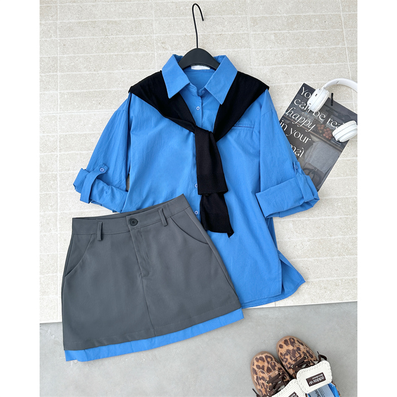 FA43076# 秋上新草原娜日太泡菜订制衬衫+披肩+灰色蓝边西装半裙套装女 服裝批發女裝批發服飾貨源