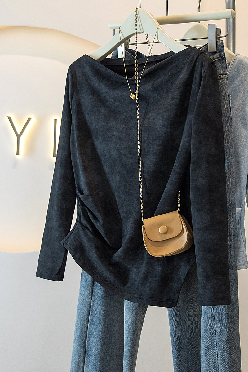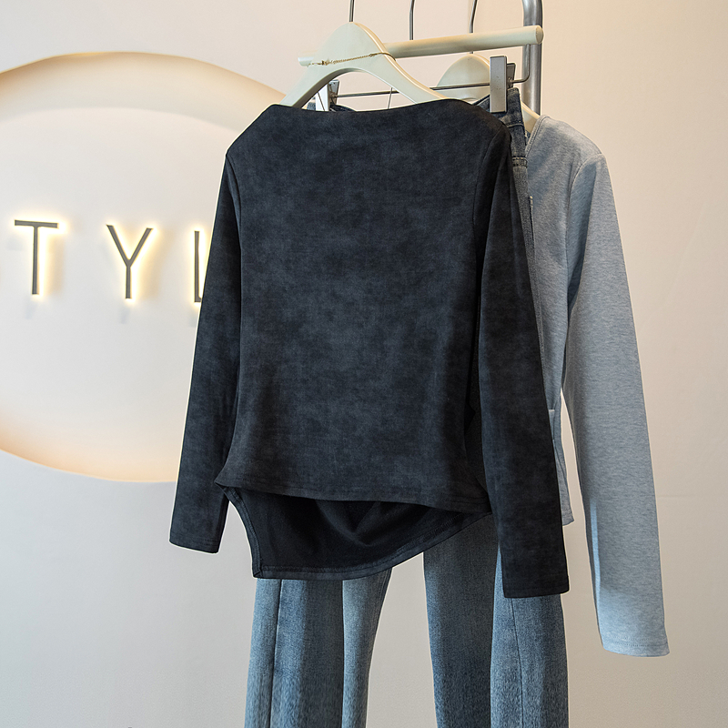 FA43086# 秋新款一字领上衣女高级感气质女神一字肩t恤长袖打底衫内搭 服裝批發女裝批發服飾貨源