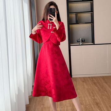 FA43094# 新中式国风高端女装两件套连衣裙高级感显瘦气质旗袍裙 服裝批發女裝批發服飾貨源