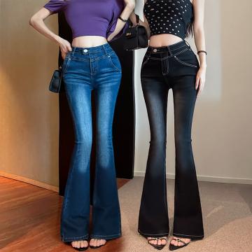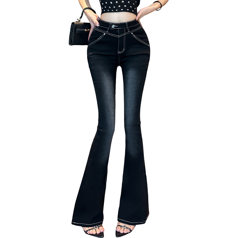 FA43098# 秋季新款韩版丰胯微喇牛仔裤女磨白弹力高腰百搭喇叭长裤 服裝批發女裝批發服飾貨源