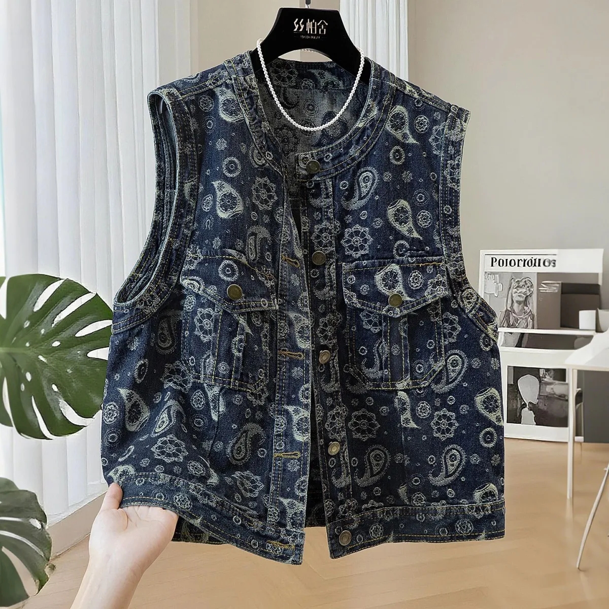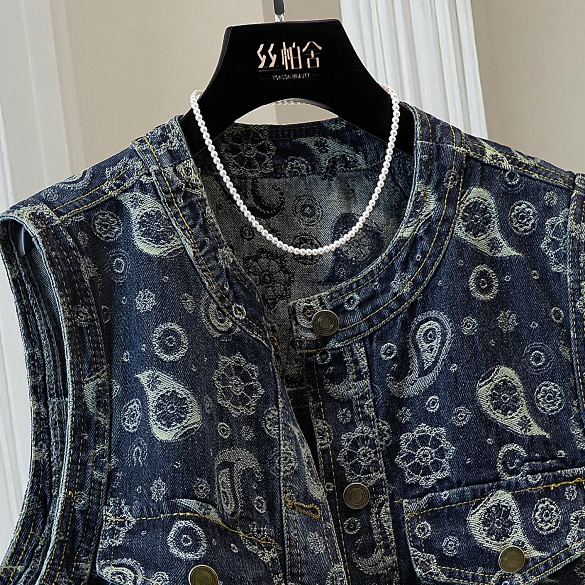 FA43106# 秋装新款女装复古宽松款叠穿气质水洗牛仔马甲圆领马夹 服裝批發女裝批發服飾貨源