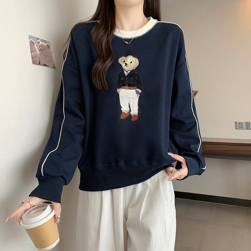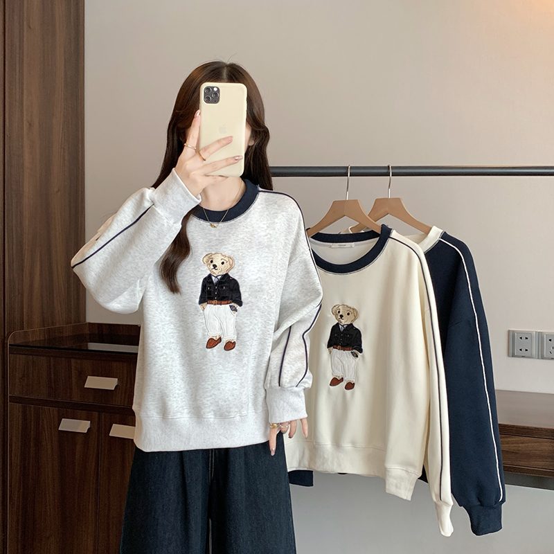 Home > 卫衣 > FA43109# 秋装新款胖大码女撞色减龄卡通刺绣长袖套头卫衣上衣 服裝批發女裝批發服飾貨源