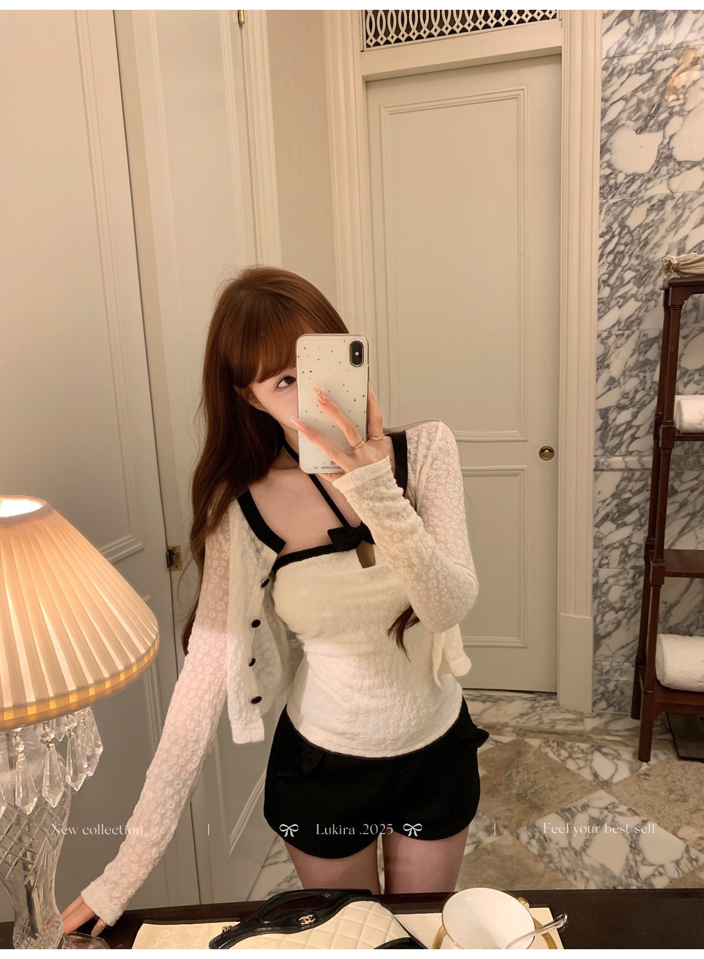 FA43256# 复古气质挂脖吊带背心蕾丝提花长袖开衫秋季新款时尚套装女潮 服裝批發女裝批發服飾貨源
