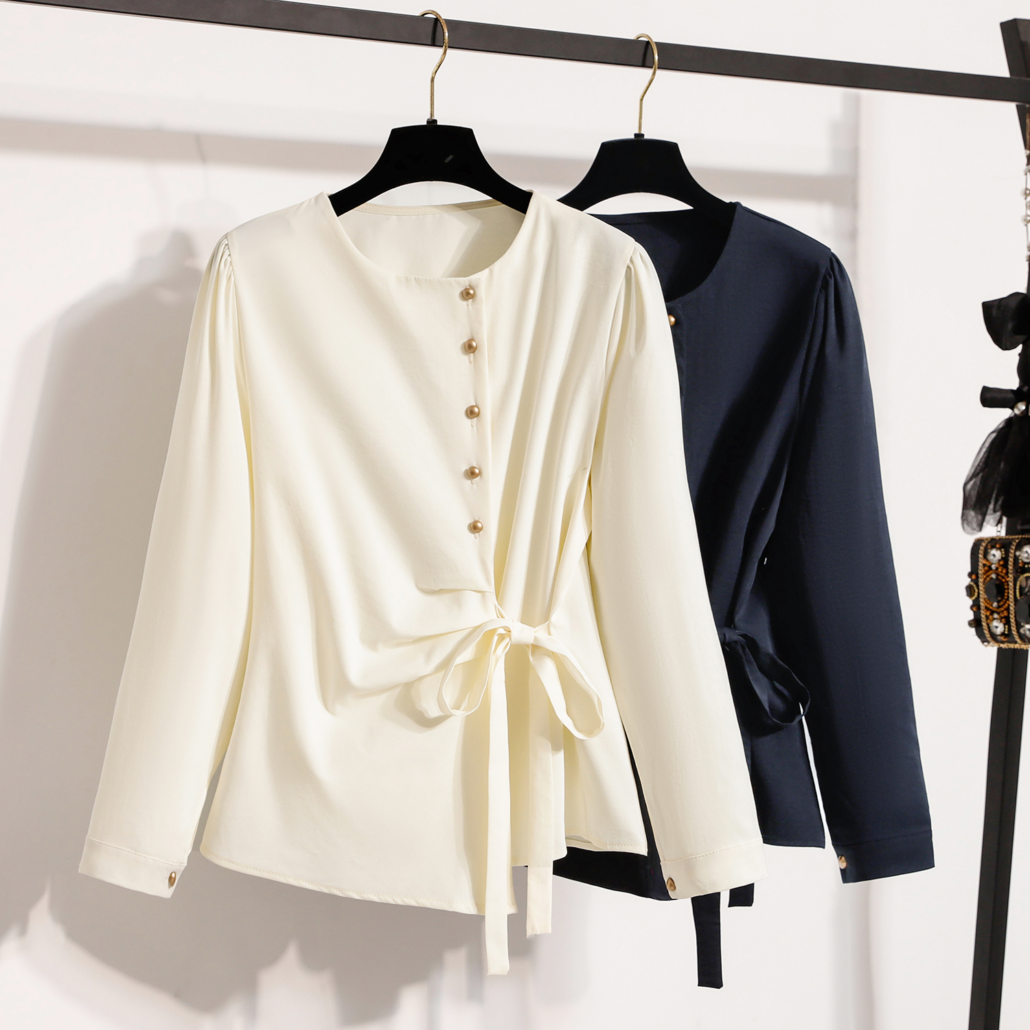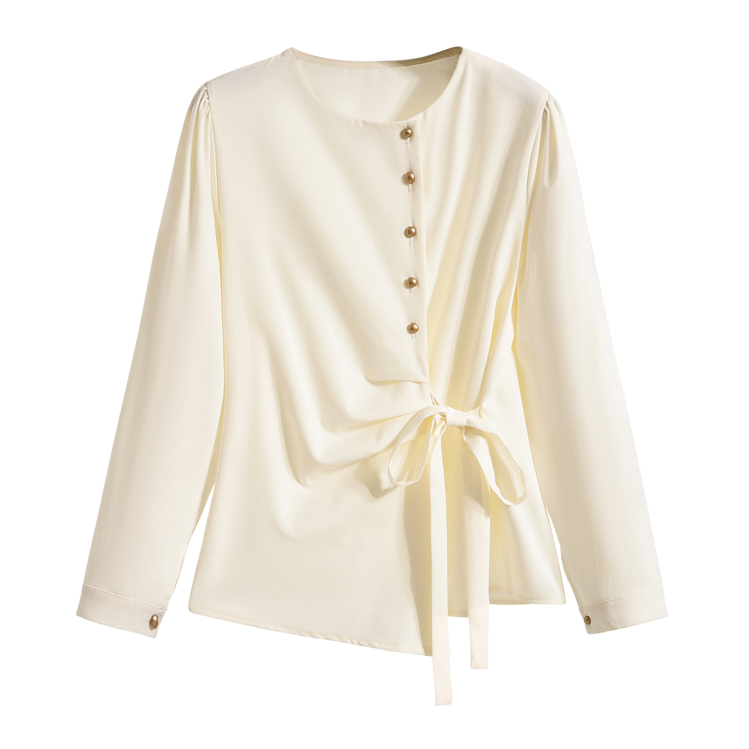 FA43280# 法式休闲不规则长袖衬衫女蝴蝶结衬衣遮肉显瘦上衣 服裝批發女裝批發服飾貨源