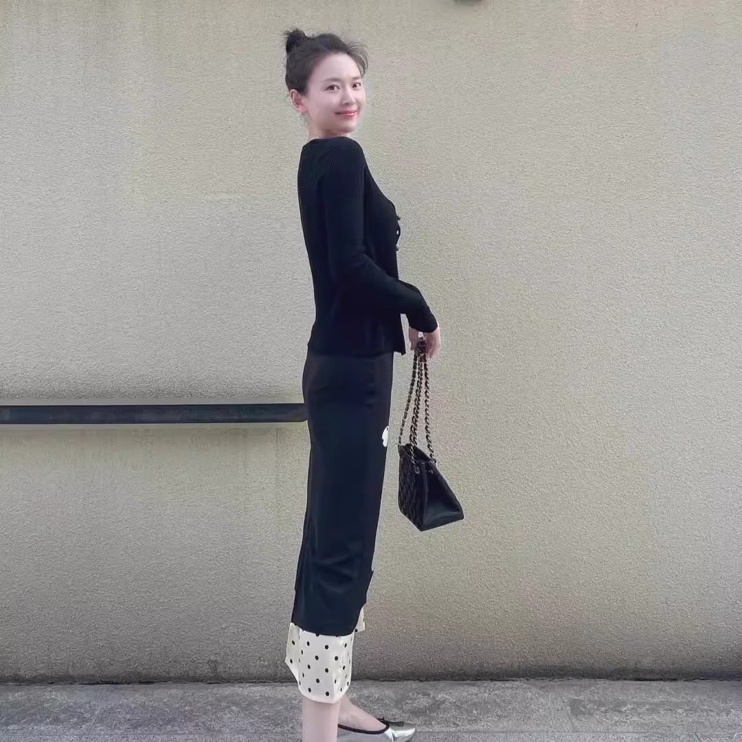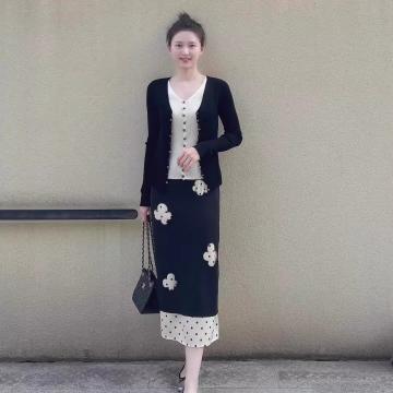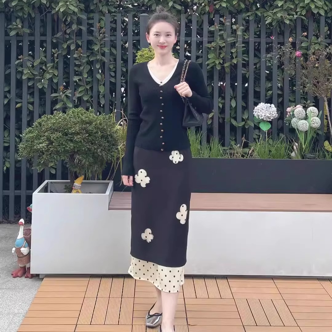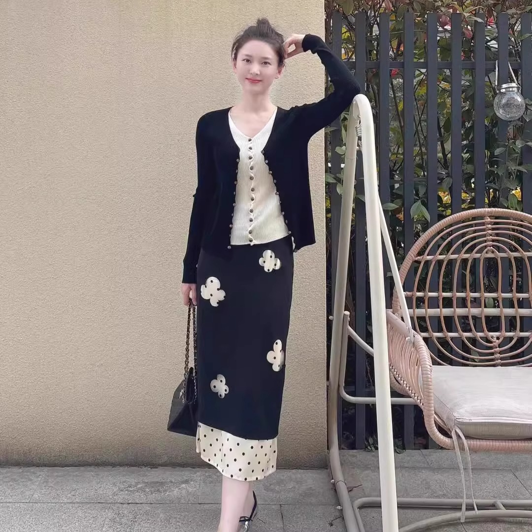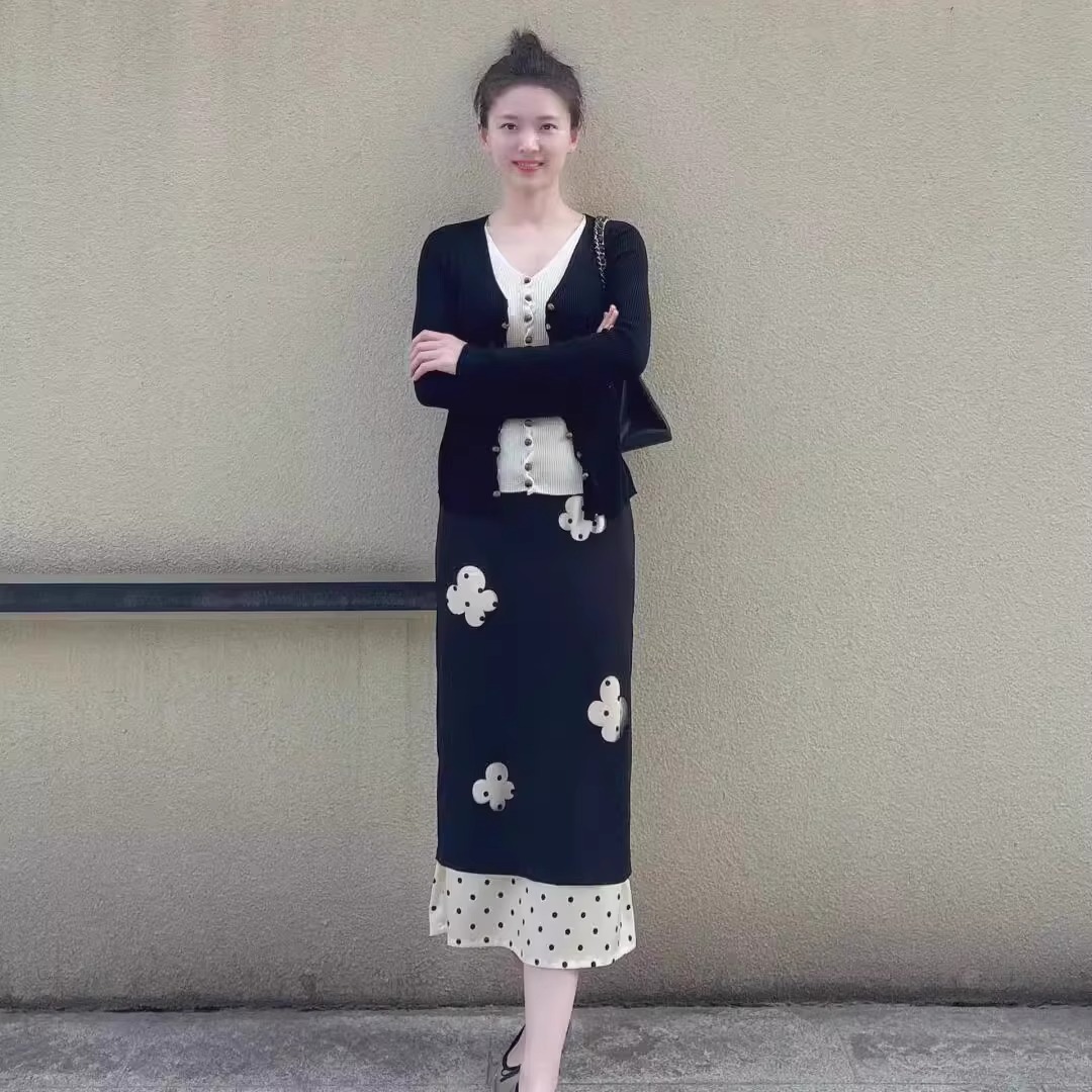 FA43290# 秋季搭配一整套大码胖mm假两件针织衫半身裙小香风独特漂亮套装女 服裝批發女裝批發服飾貨源
