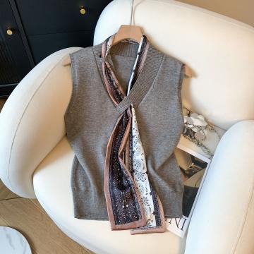 FA43443# 韩系V领丝巾针织衫马甲背心女春秋宽松显瘦气质百搭无袖上衣 服裝批發女裝批發服飾貨源