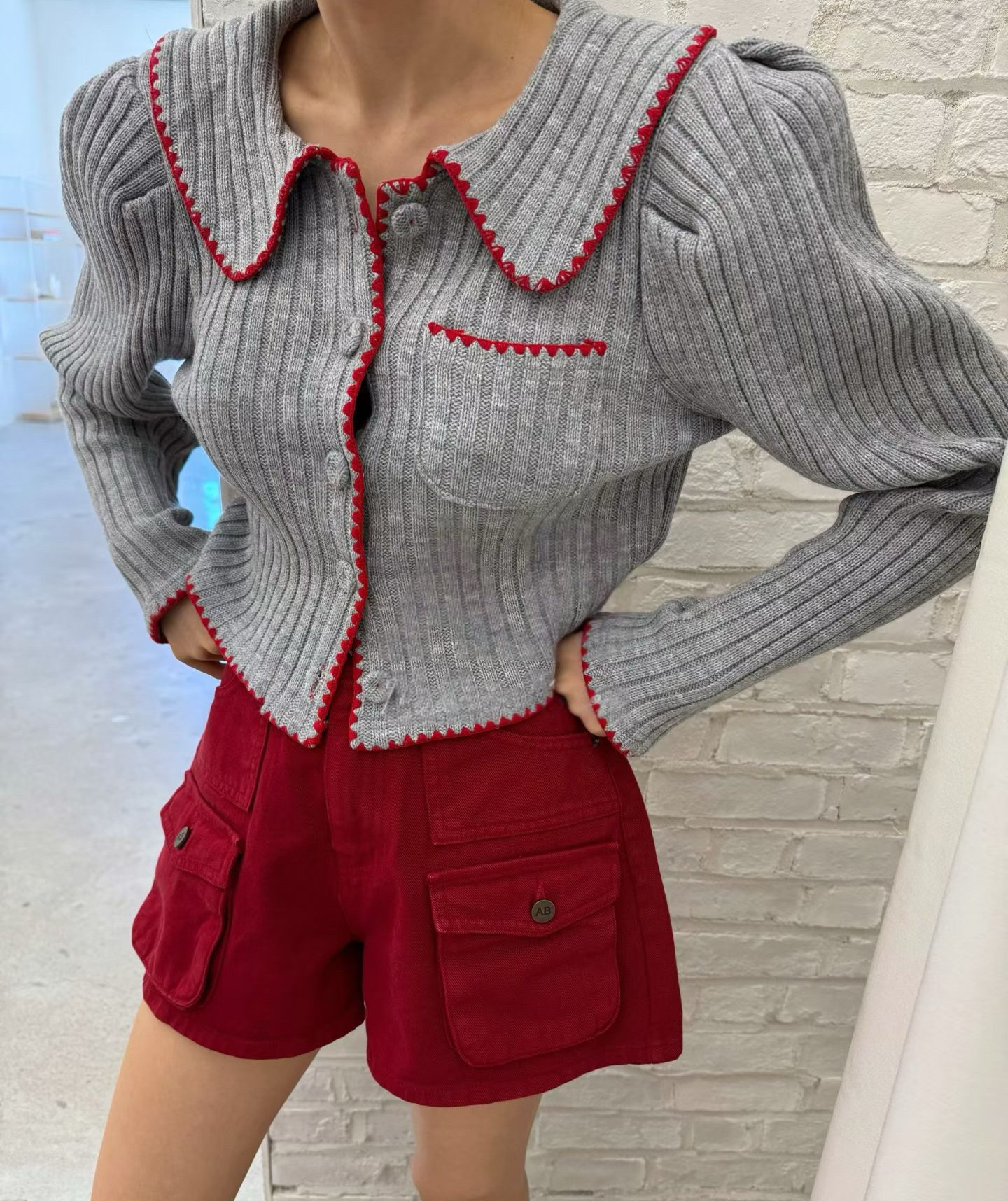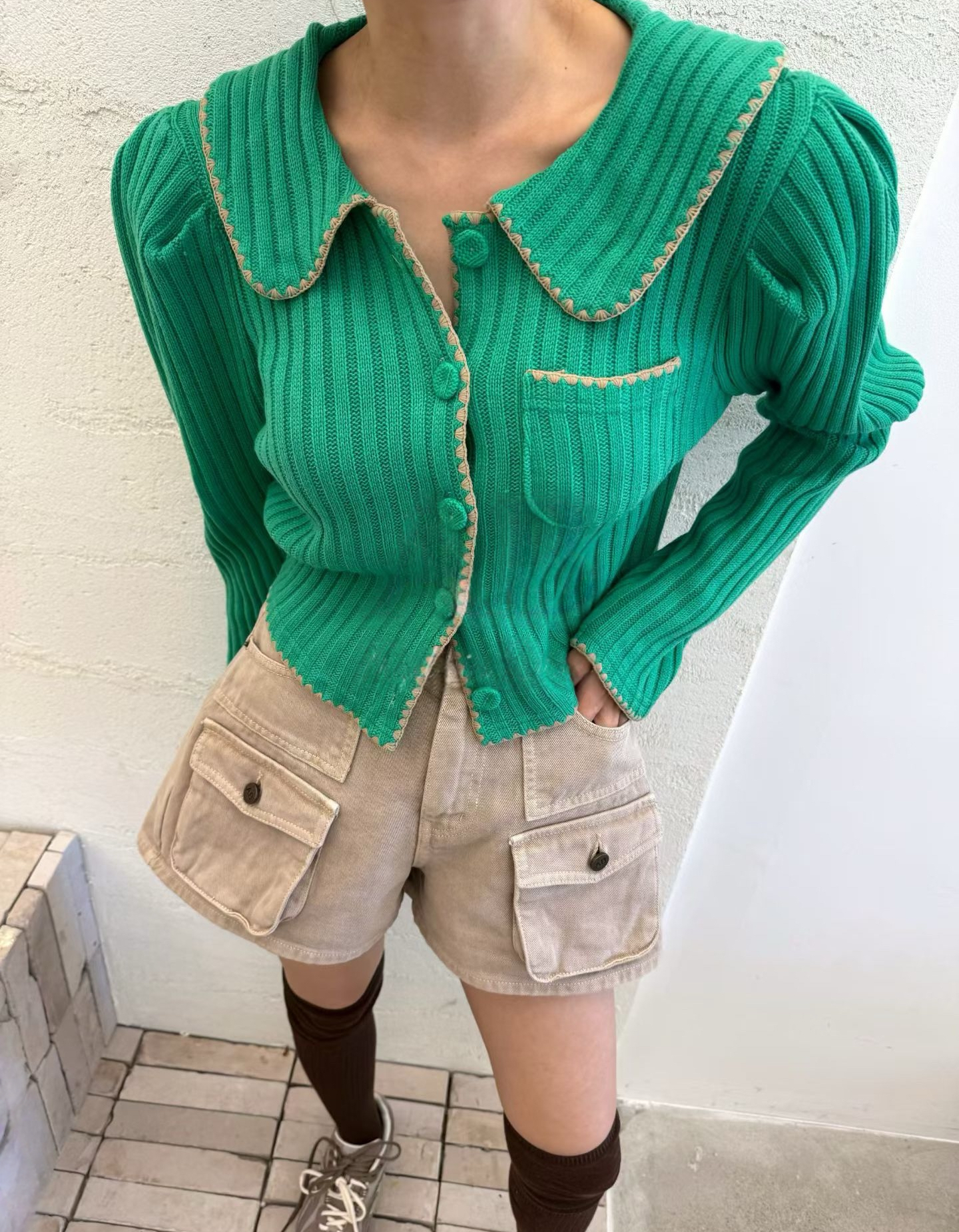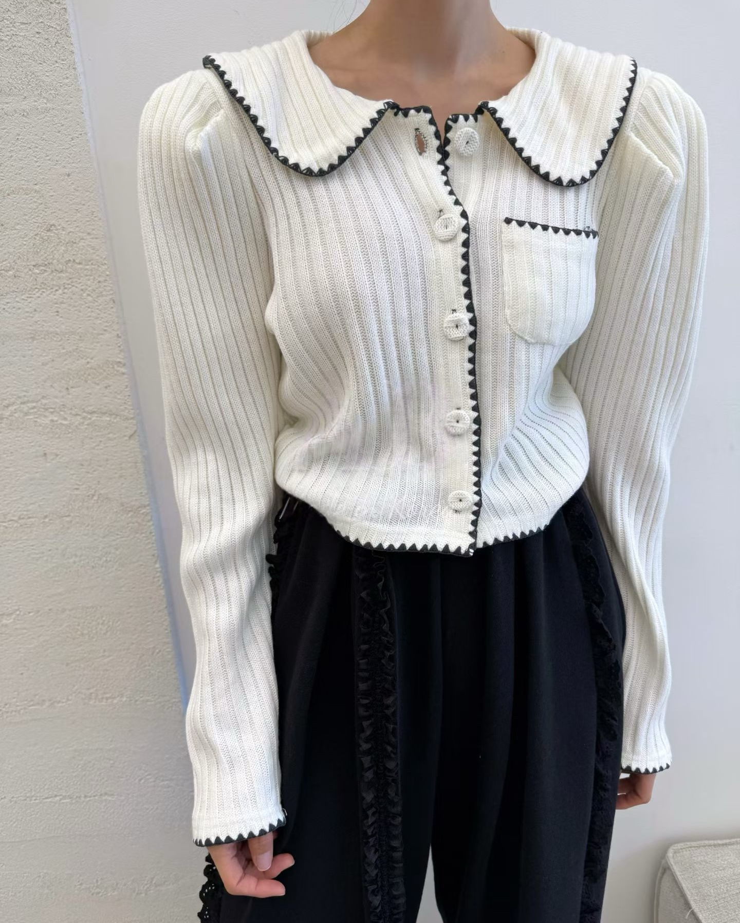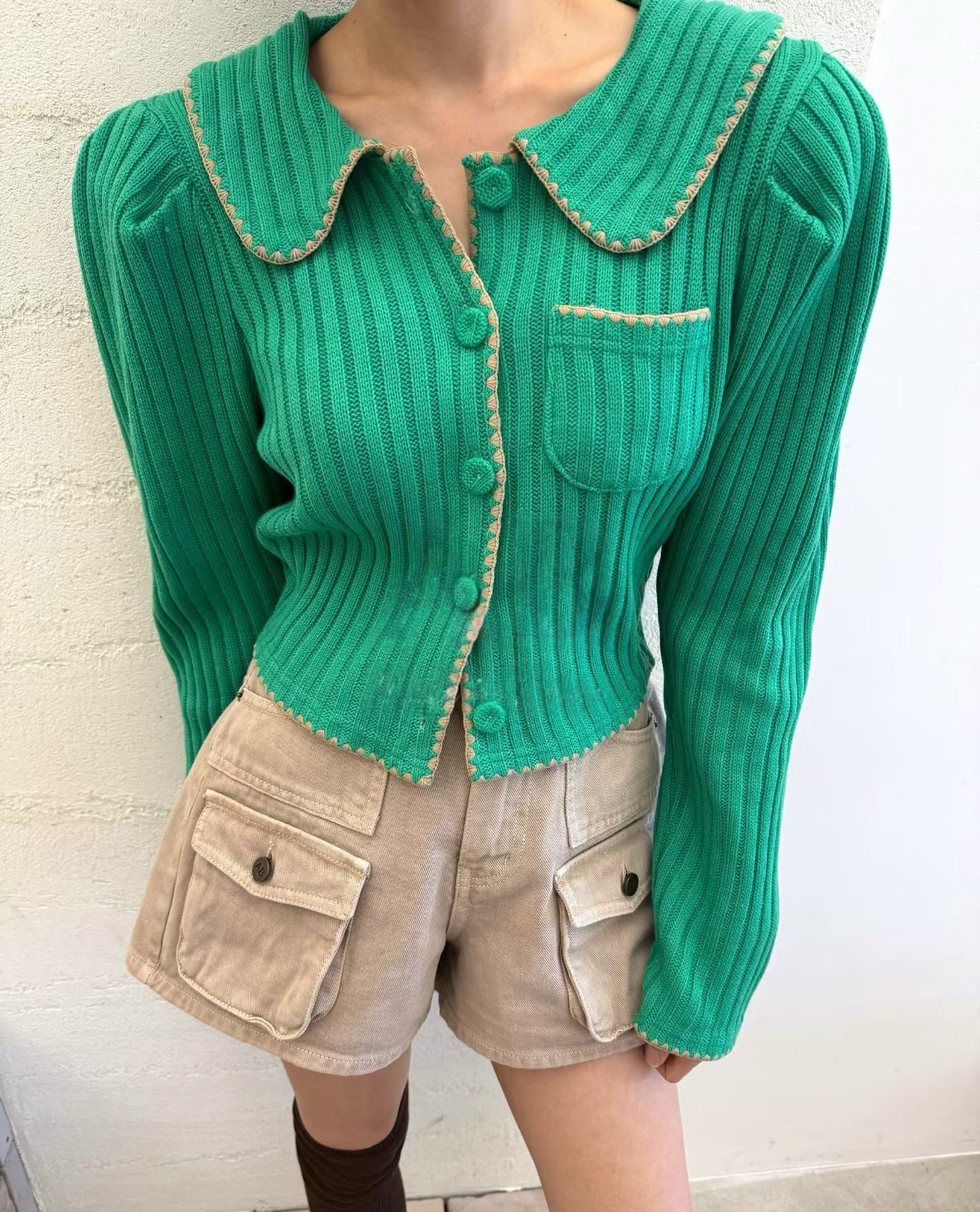 FA43473# 有货韩国东大门新款时尚百搭翻领系扣针织开衫 服裝批發女裝批發服飾貨源
