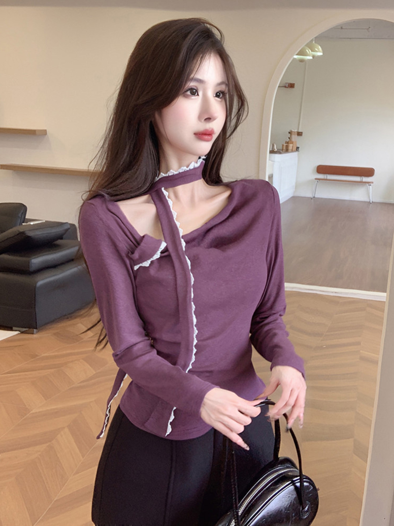 FA43481# 法式设计感洋气T恤上衣蕾丝拼接气质打底小衫配飘带 服裝批發女裝批發服飾貨源