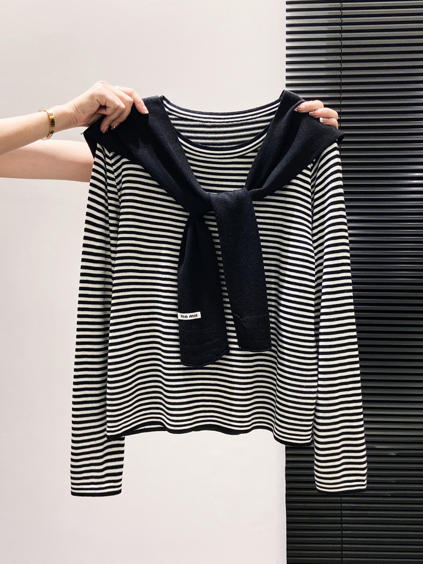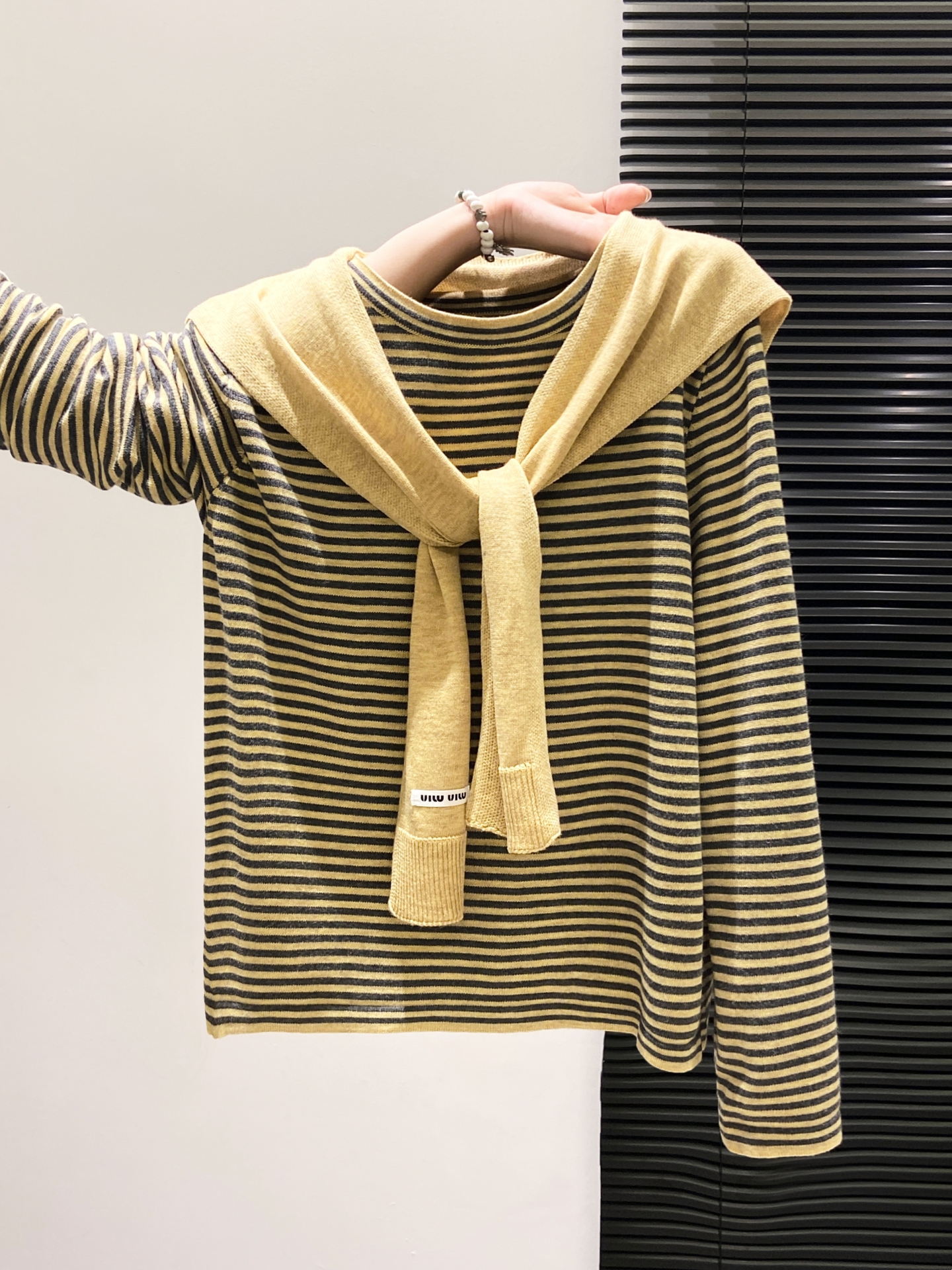 FA43640# 条纹披肩圆领长袖针织衫女秋季新款宽松显瘦休闲百搭打底上衣 服裝批發女裝批發服飾貨源