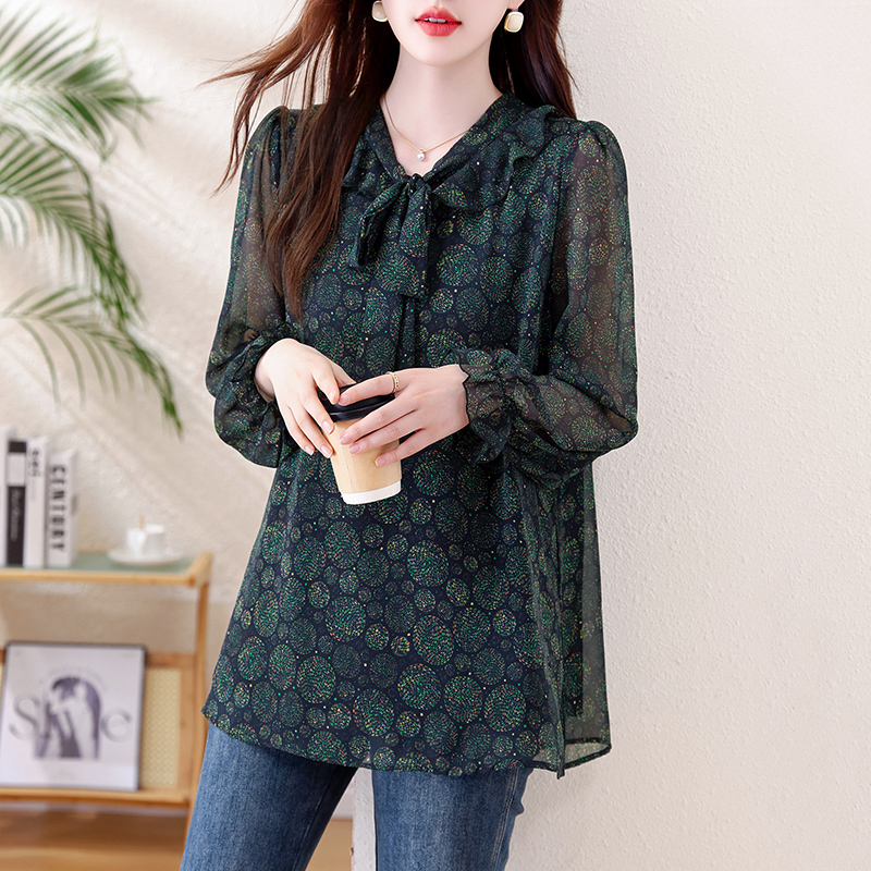 Home > 长袖雪纺衫、衬衫、上衣 > FA43658# 新款大码女装正肩轻奢减龄时髦洋气百搭系带遮肉显瘦上衣 服裝批發女裝批發服飾貨源