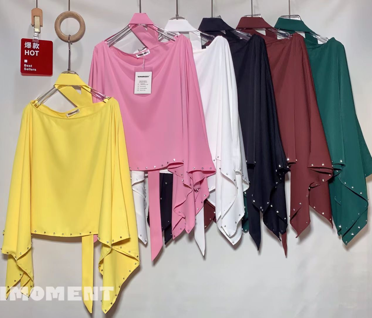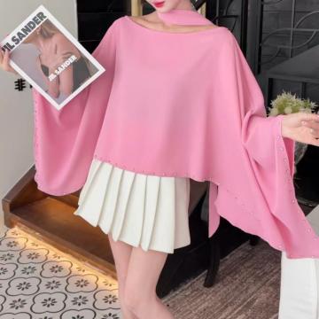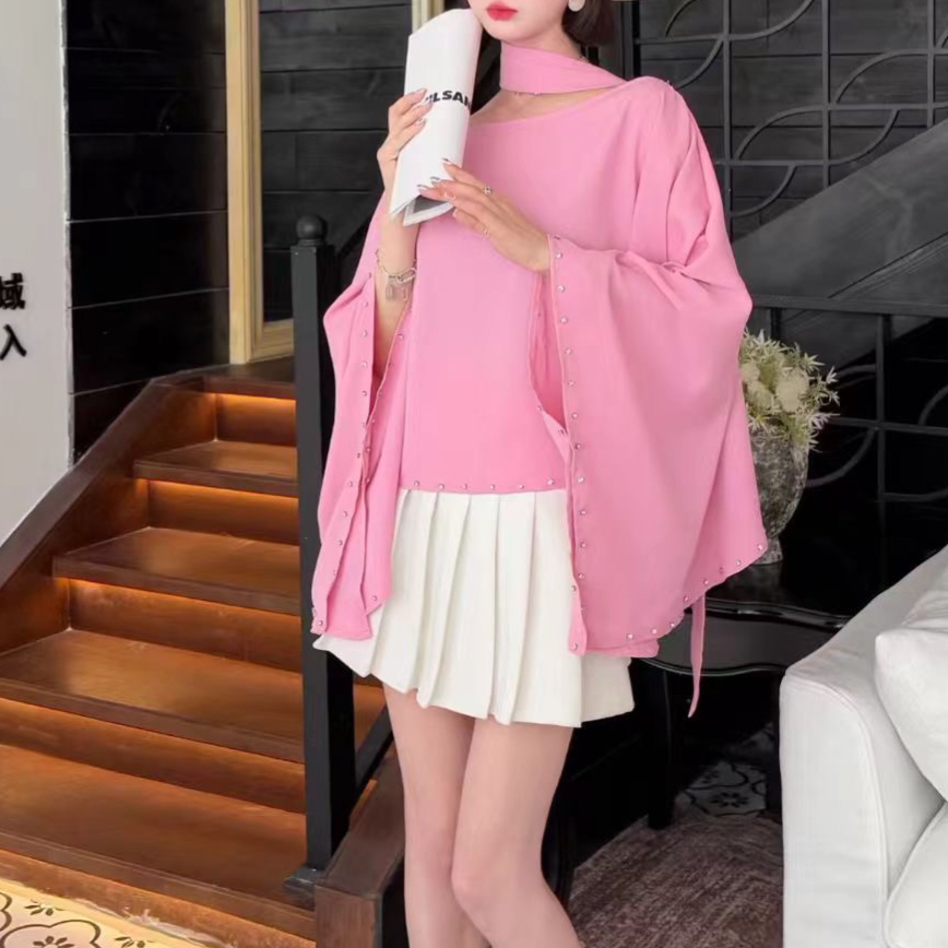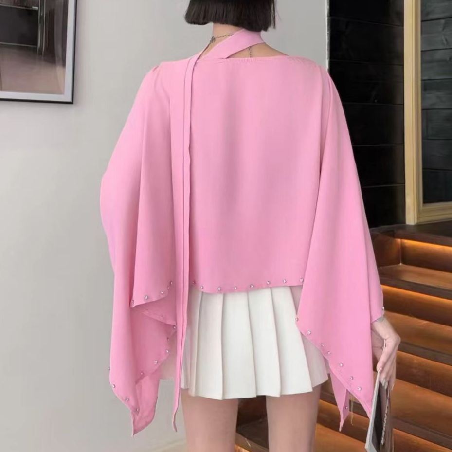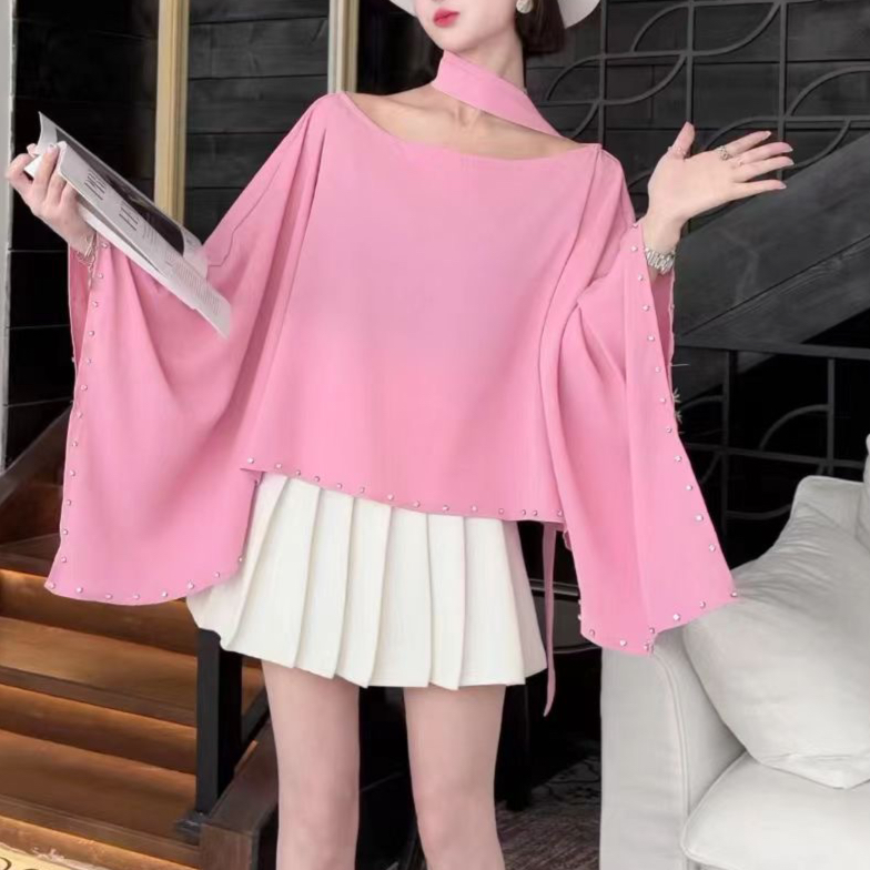FA43682# 高级感秋装慵懒风不规则蝙蝠袖衬衫秋时尚钉珠宽松罩衫 服裝批發女裝批發服飾貨源