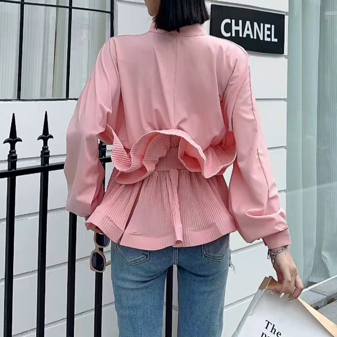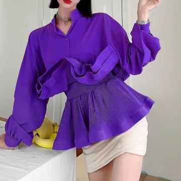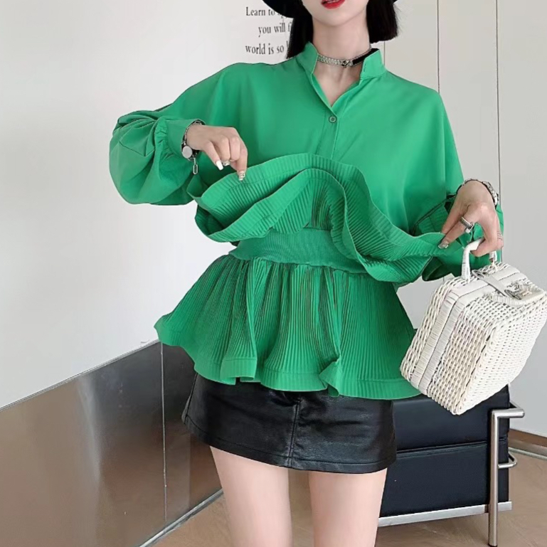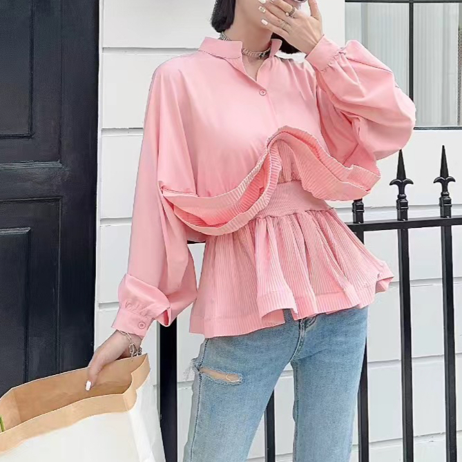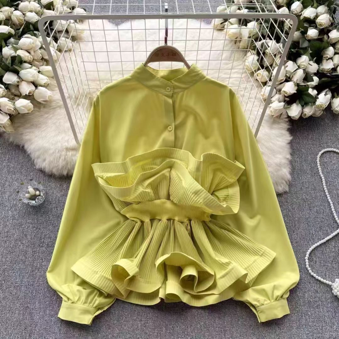 FA43683# 法式名媛高级感泡泡袖衬衫收腰荷叶边设计小众超仙上衣 服裝批發女裝批發服飾貨源