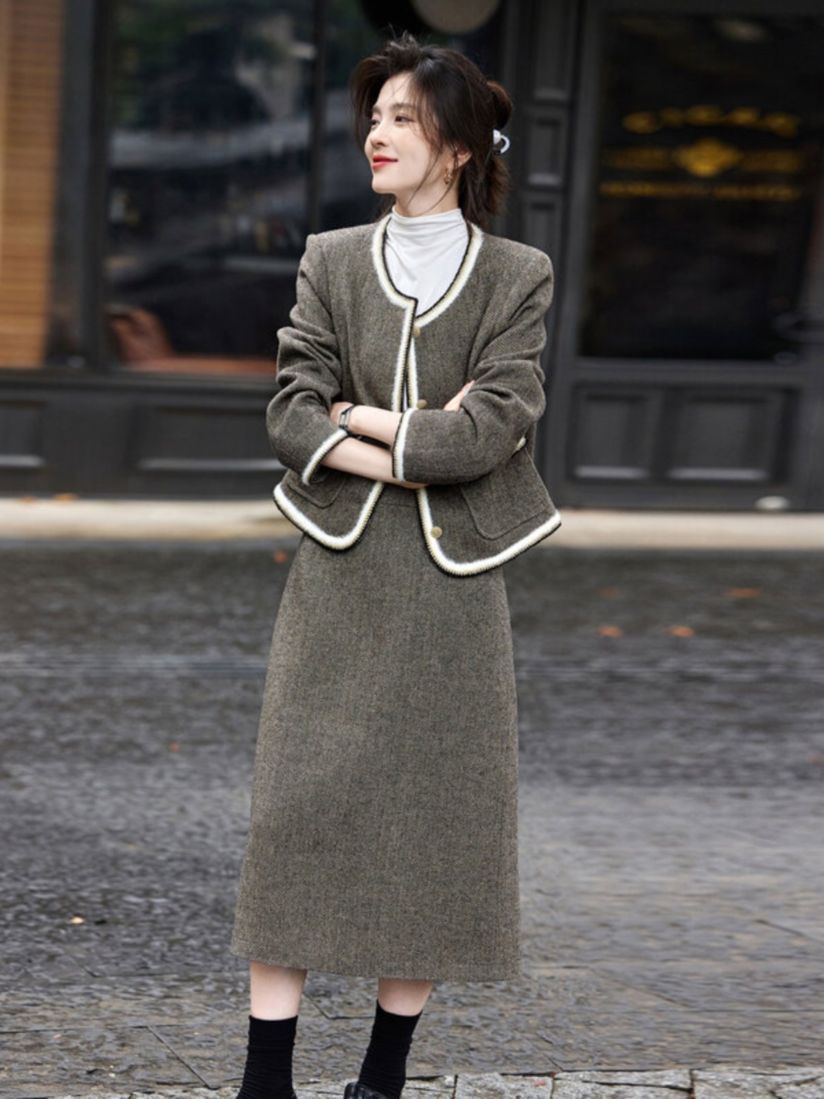 FA43695# 时尚贵气小香风外套半身裙套装女春季新品淑女感两件套 服裝批發女裝批發服飾貨源