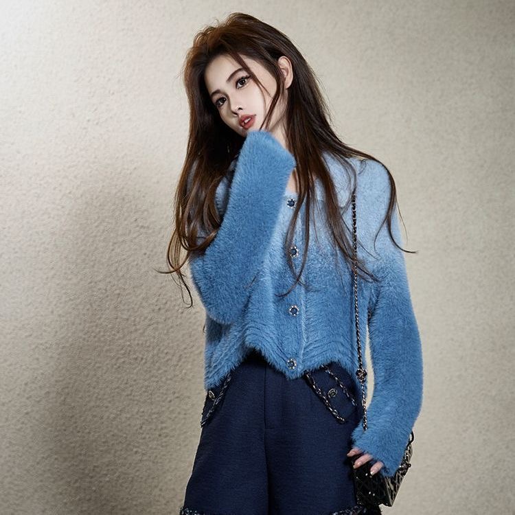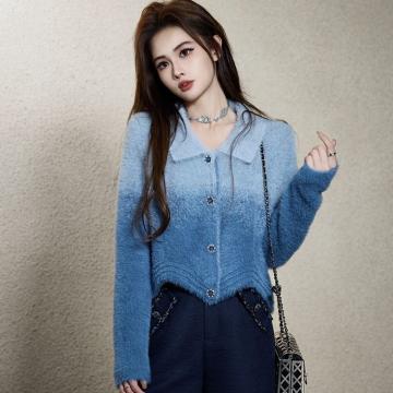 FA43736# 韩版渐变色针织显白长袖渐变毛衣春季新款针织衫外套显瘦开衫上衣 服裝批發女裝批發服飾貨源