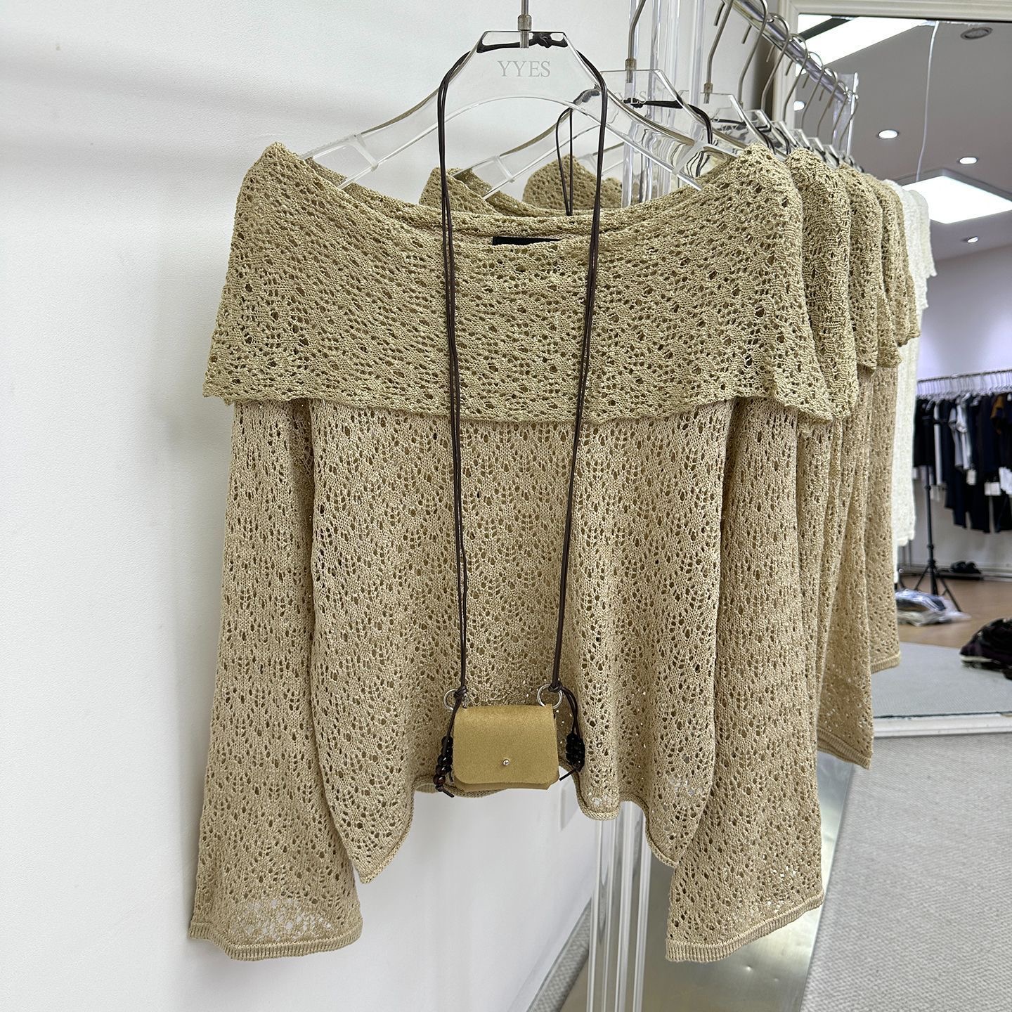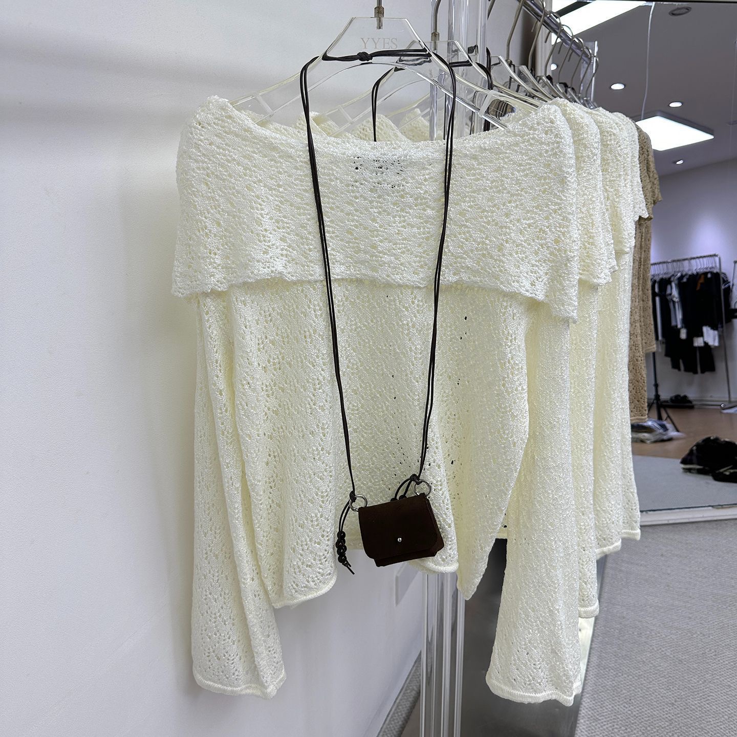 FA43737# 韩版休闲慵懒风时尚气质一字肩镂空防晒宽松显瘦百搭针织上衣外套 服裝批發女裝批發服飾貨源