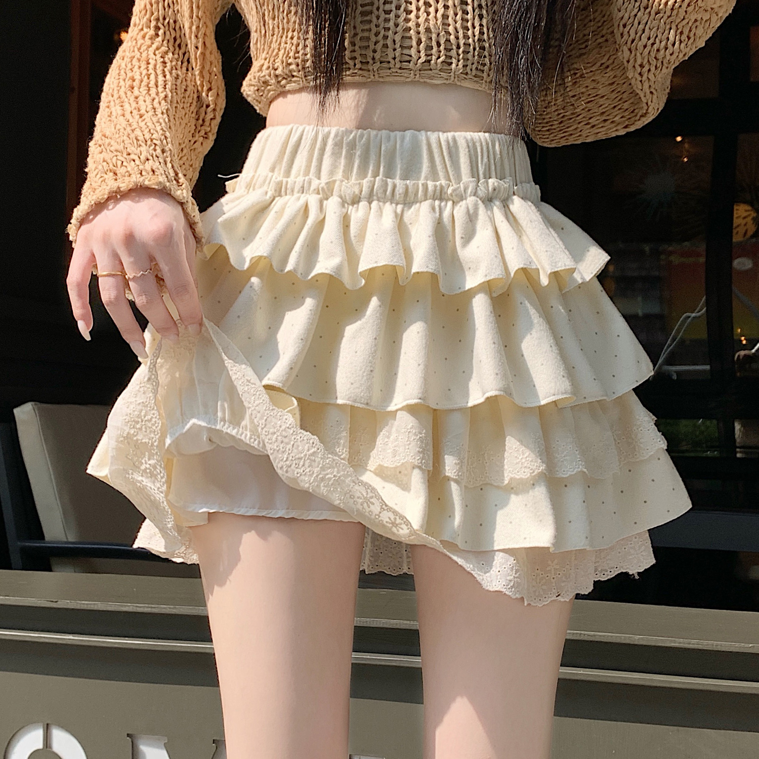 FA43843# 法式拼接蕾丝波点蓬蓬半身裙女秋冬新款设计感甜美蛋糕短裙 服裝批發女裝批發服飾貨源