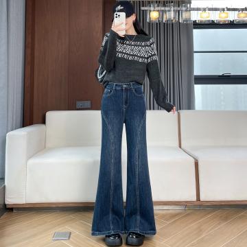 FA43844# 设计感微喇修身牛仔裤女秋冬新款高腰显瘦弹力百搭直筒长裤潮 服裝批發女裝批發服飾貨源