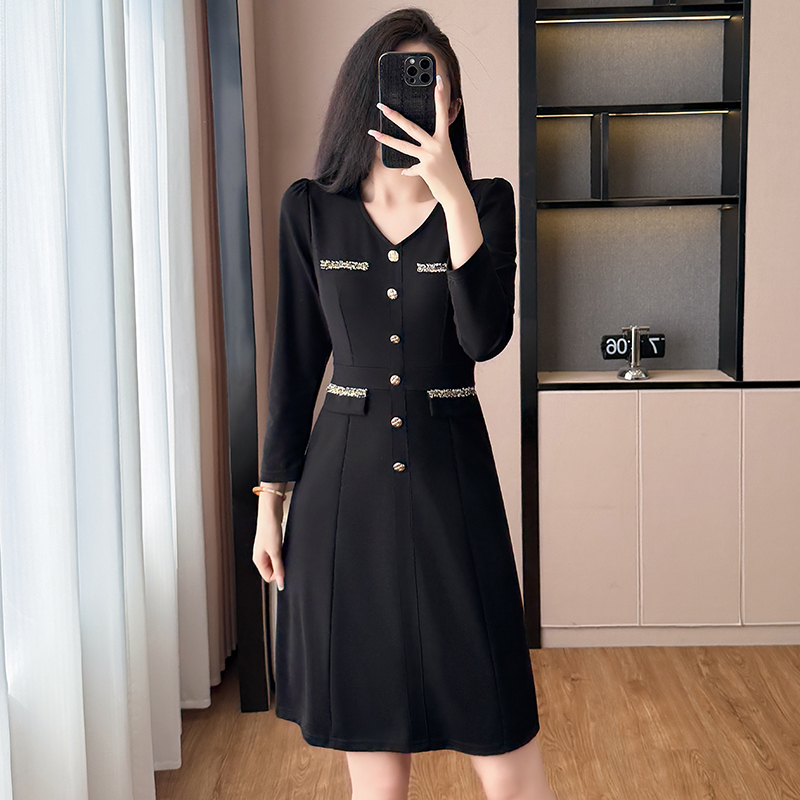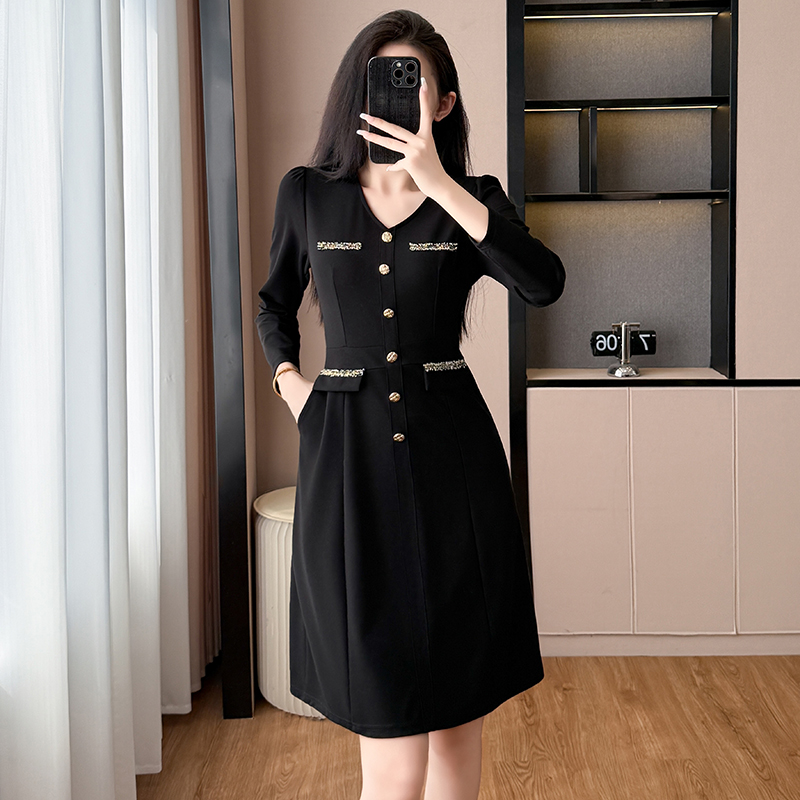 FA43886# 时尚气质修身显瘦黑色大码女装胖mm阔太太长袖连衣裙子春秋季新款 服裝批發女裝批發服飾貨源