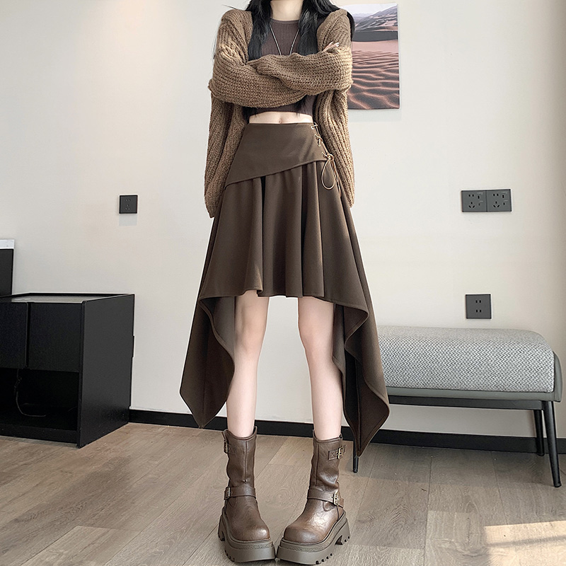FA43922# 高腰不规则毛呢半身裙女冬季新款a字时尚百搭休闲裙子 服裝批發女裝批發服飾貨源