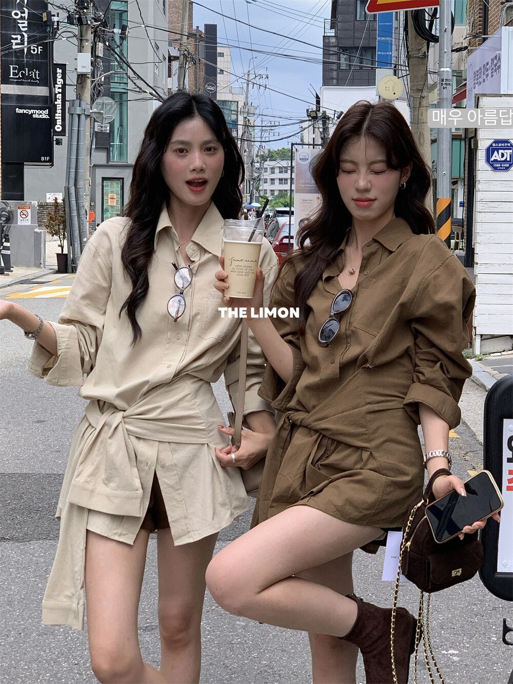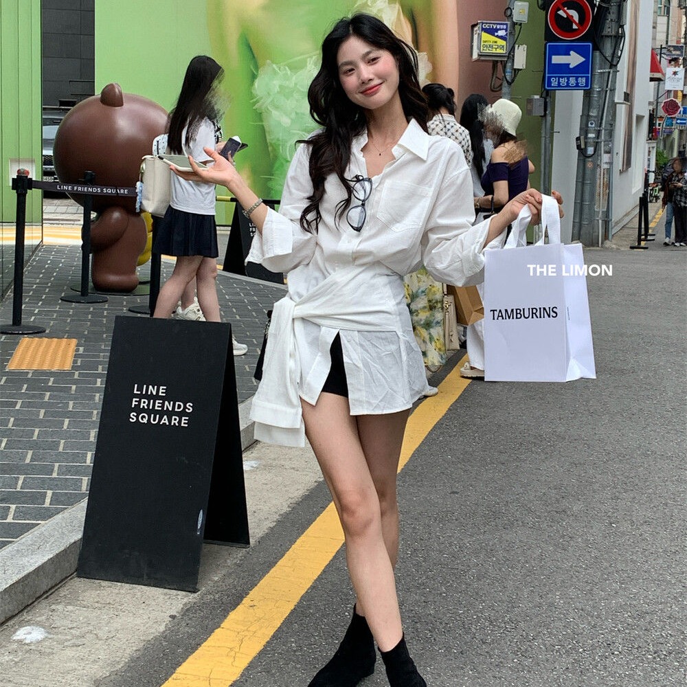 FA43978# 新款时尚百搭女法式气质单排扣交叉绑带设计感衬衫女秋季新款 服裝批發女裝批發服飾貨源