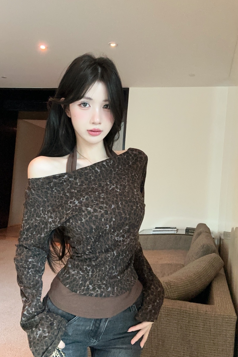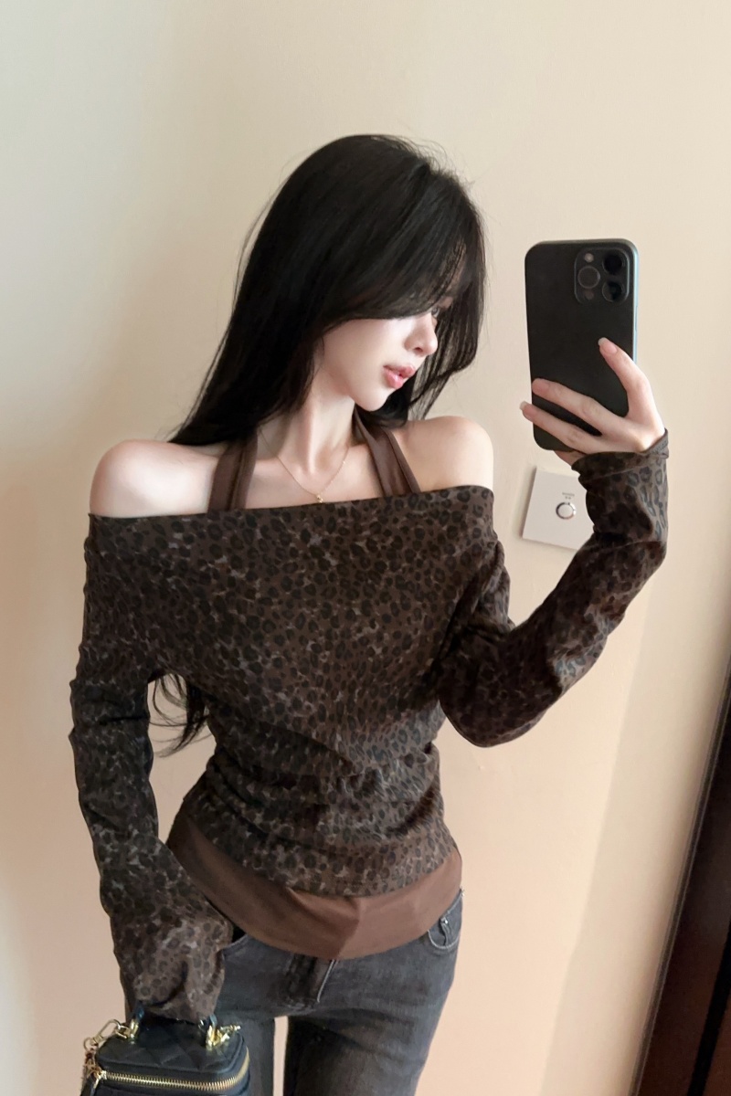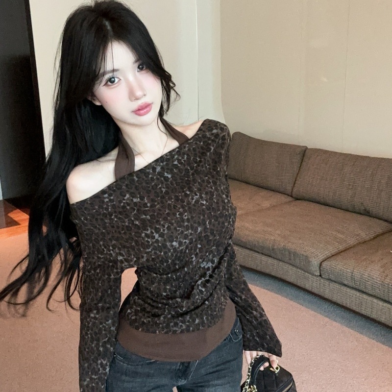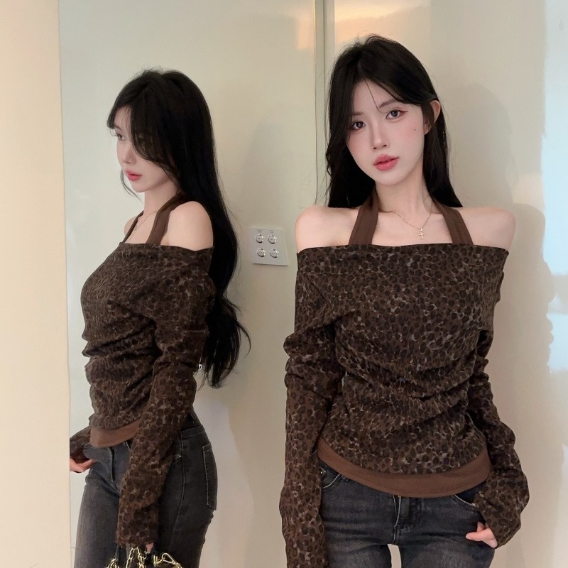 豹纹假两件上衣