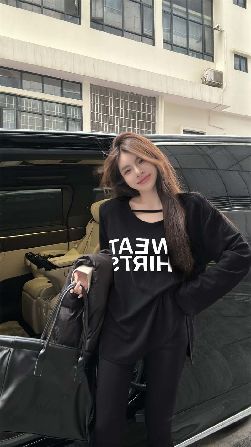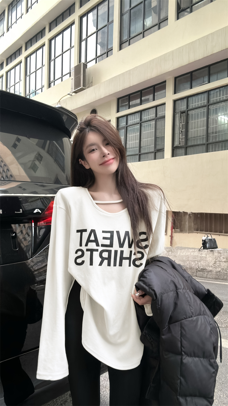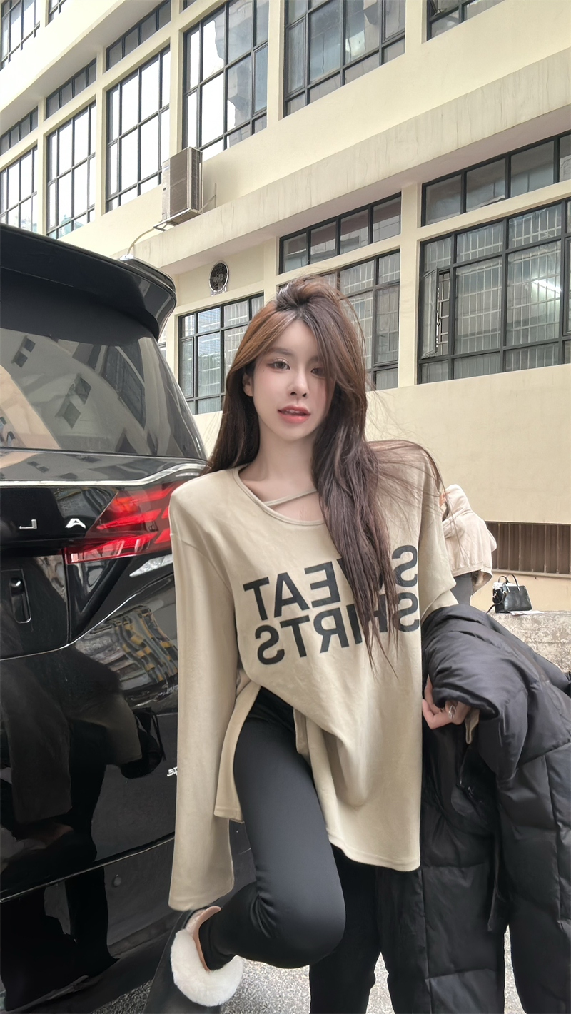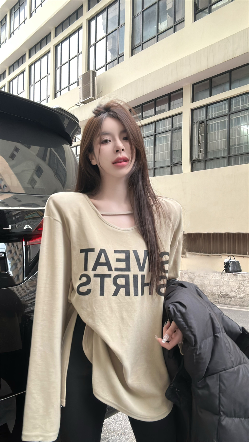 FA44077# 秋冬韩版气质字母印花宽松休闲磨毛打底T恤中长款上衣女 服裝批發女裝批發服飾貨源