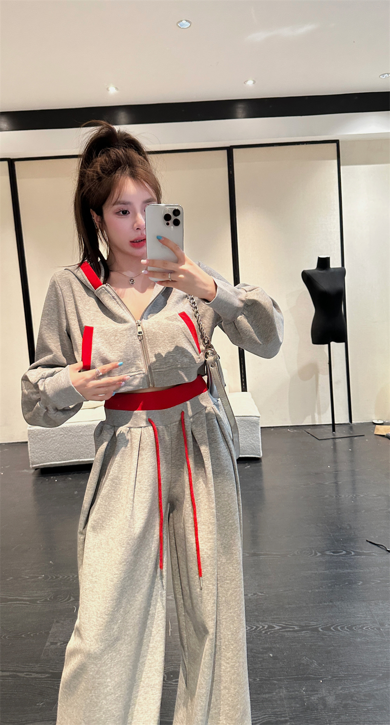 Home > 韩版套装 > FA44079# 秋冬韩版别致撞色设计感外套连帽卫衣+休闲长裤套装 服裝批發女裝批發服飾貨源