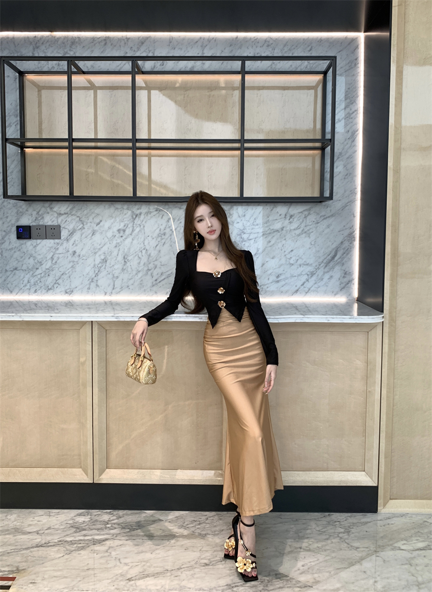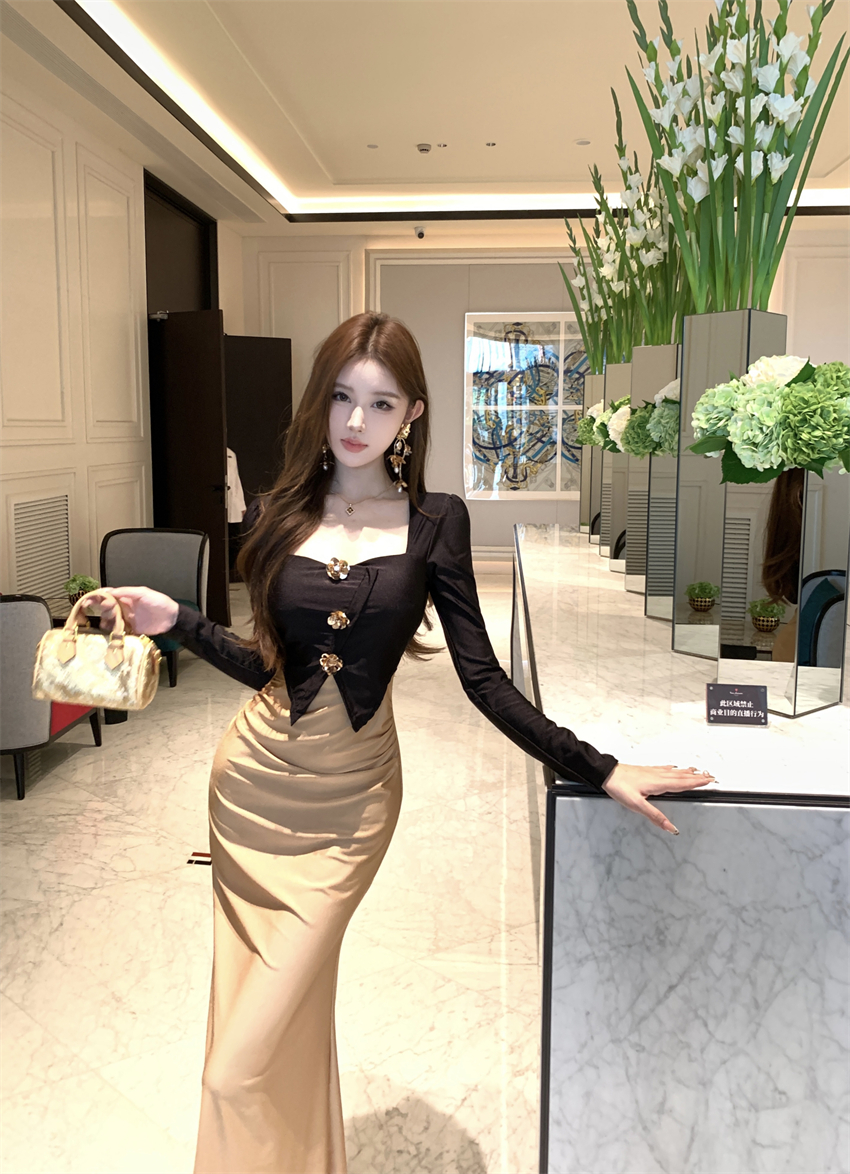 Home > 夜店裙、长袖连衣裙 > FA44126# 时尚立体花朵撞色拼接收腰长袖连衣裙 服裝批發女裝批發服飾貨源
