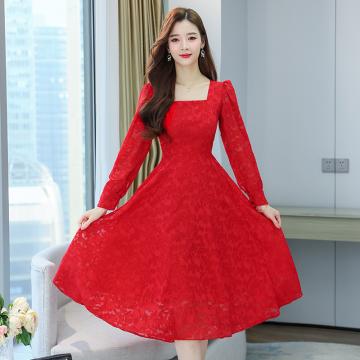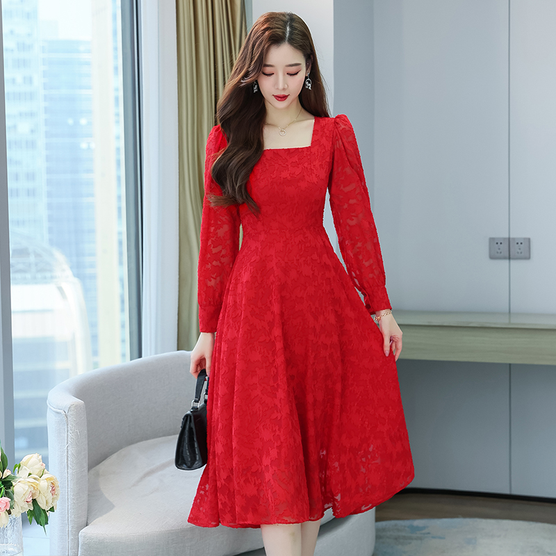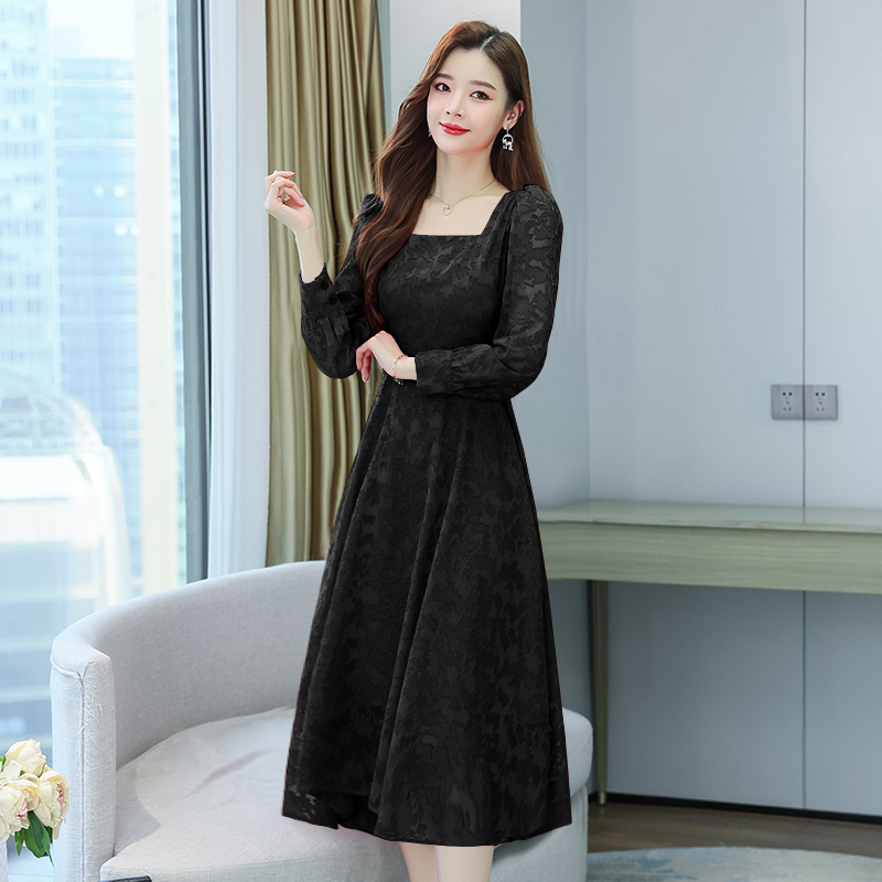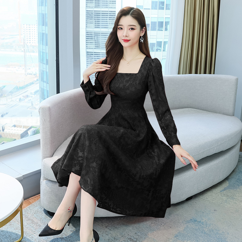 春装大码法式高级感长袖连衣裙胖mm收腰遮肚显瘦气质赫本风小黑裙 服裝批發女裝批發服飾貨源