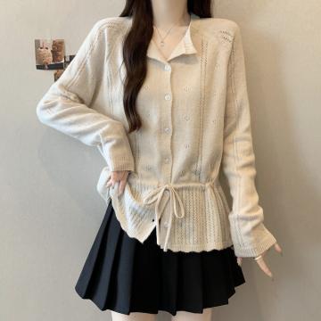 大码秋冬新款奶油设计感收腰绑带针织衫胖mm显瘦遮肉上衣 服裝批發女裝批發服飾貨源