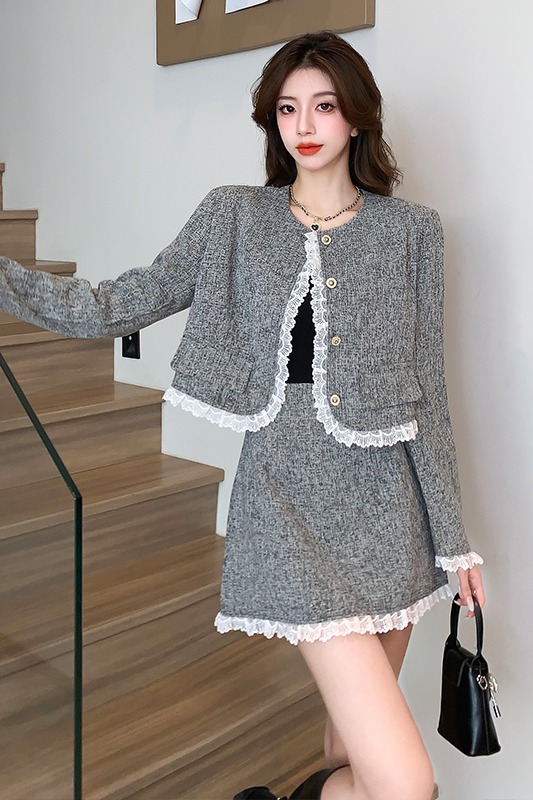 FA44373# 春小香风短外套气质半身裙套装 服裝批發女裝批發服飾貨源