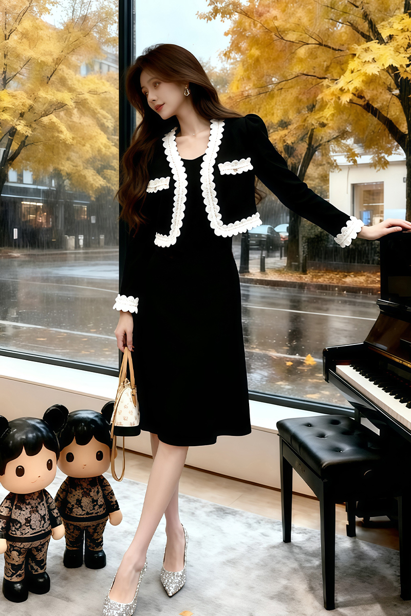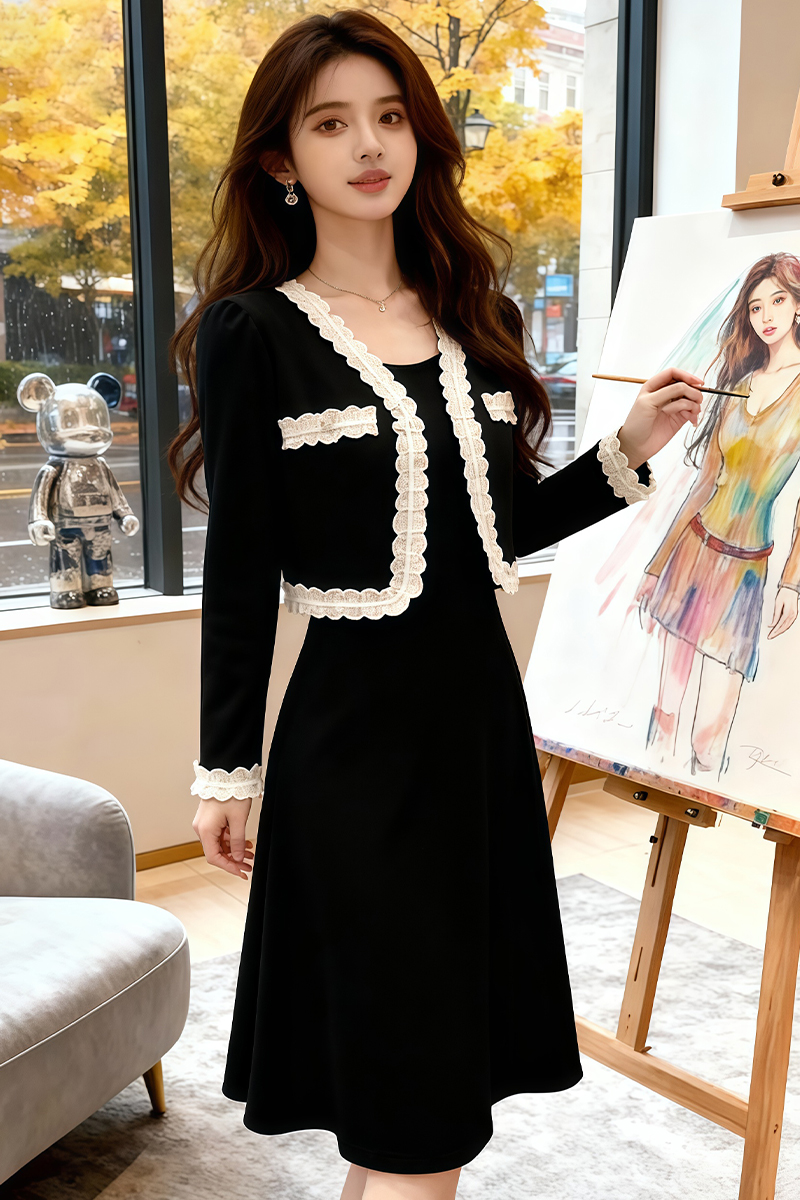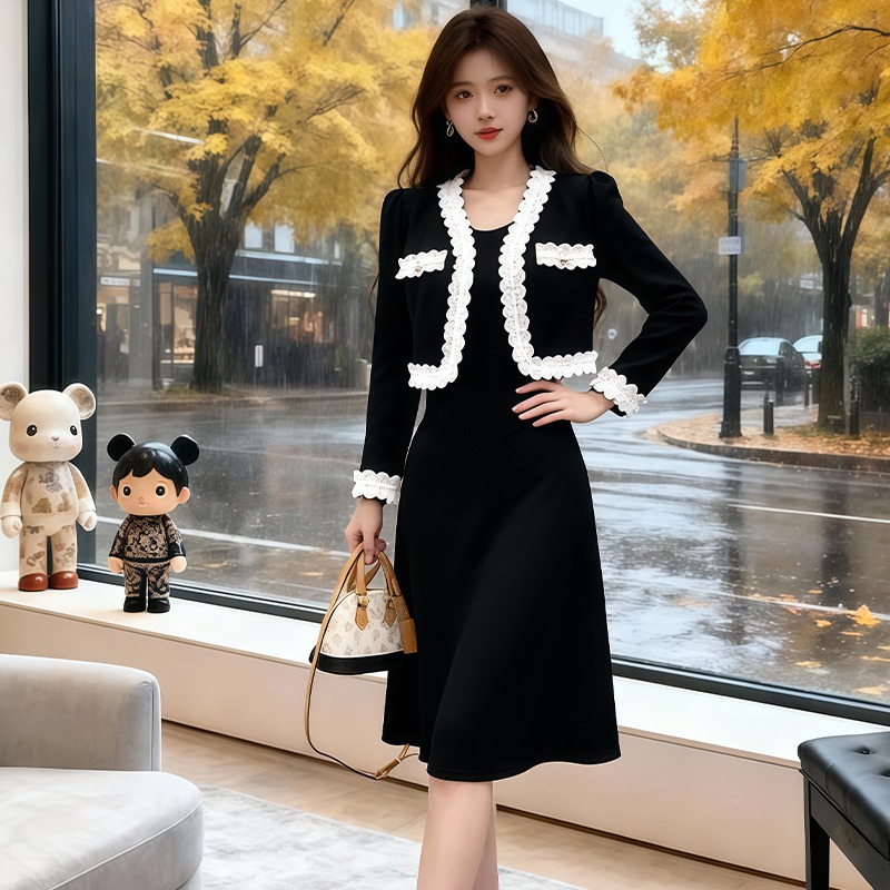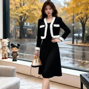 FA44396# 秋新款时尚法式小香风气质收腰显瘦假两件中长款针织连衣裙女 服裝批發女裝批發服飾貨源