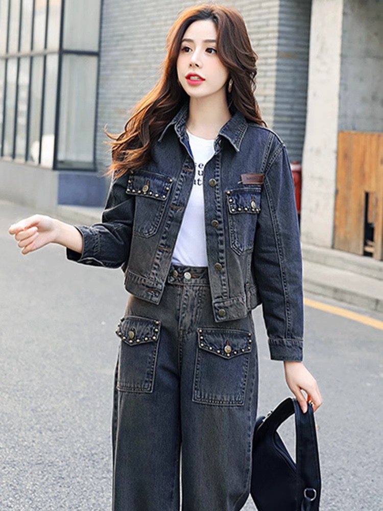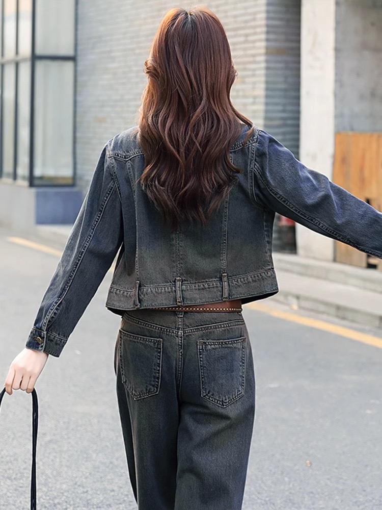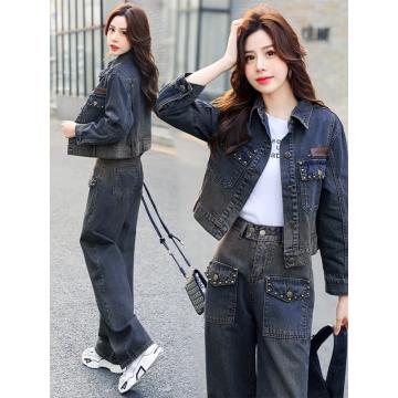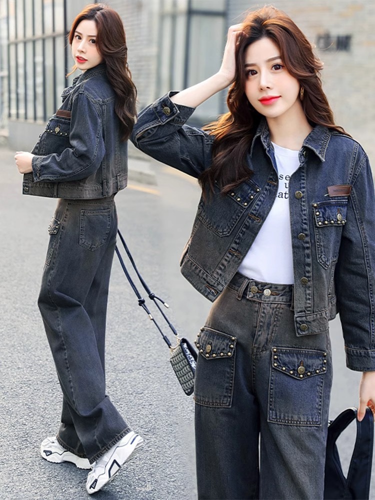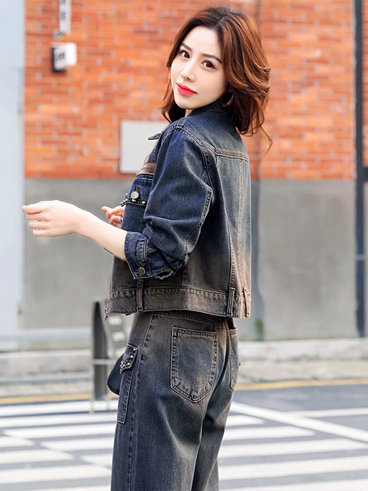 FA44403# 牛仔套装女春秋新款欧货减龄休闲时尚高端洋气小个子两件套 服裝批發女裝批發服飾貨源