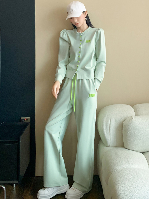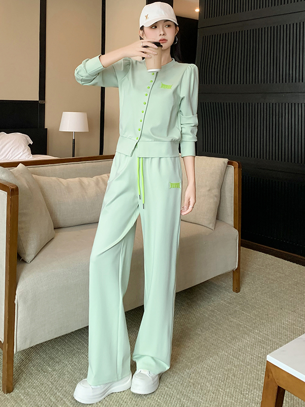 FA44404# 潮牌时尚休闲运动套装女秋季洋气减龄半球服外套上衣阔腿裤两件套 服裝批發女裝批發服飾貨源
