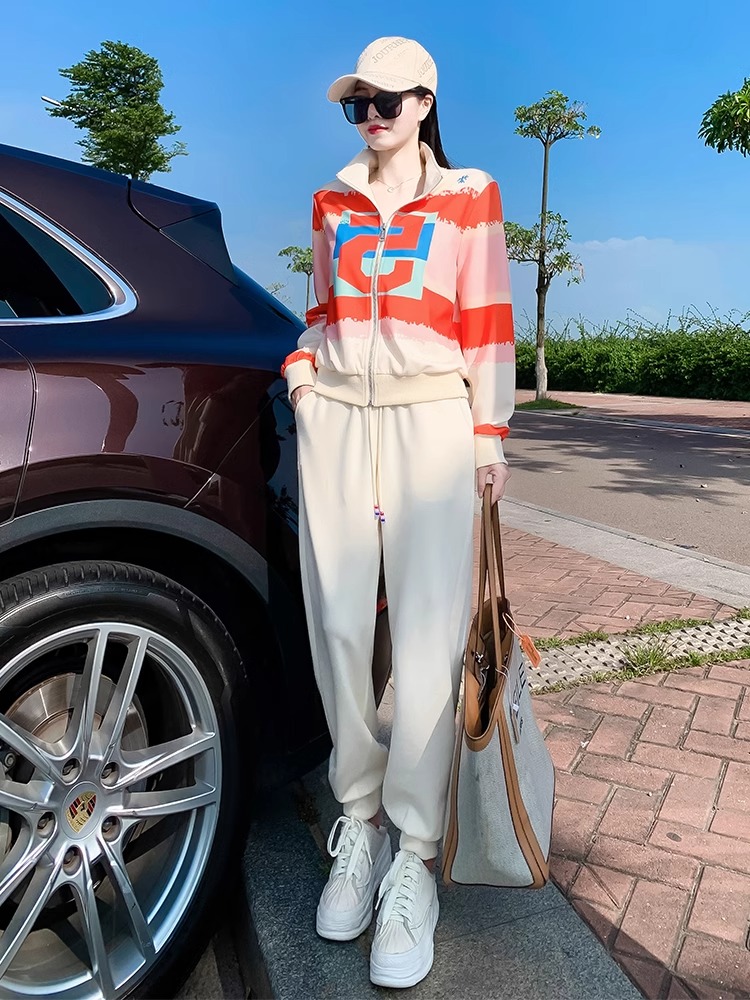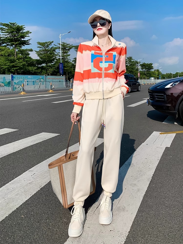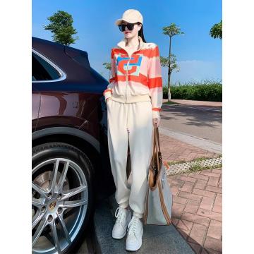 FA44406# 春夏季新款宽松卫衣卫裤两件套女装时尚拼色字母印花开衫上衣套装 服裝批發女裝批發服飾貨源