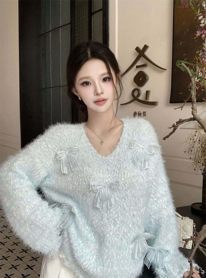 Home > 毛衣、针织衫 > FA44437# 独特漂亮长袖V领毛衣秋冬新款温柔风甜美针织上衣女 服裝批發女裝批發服飾貨源