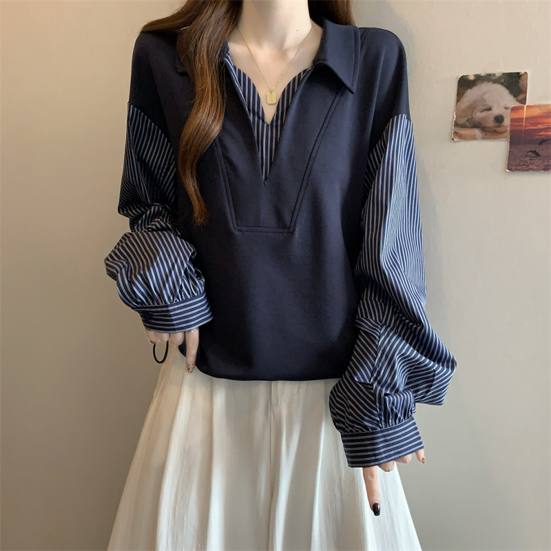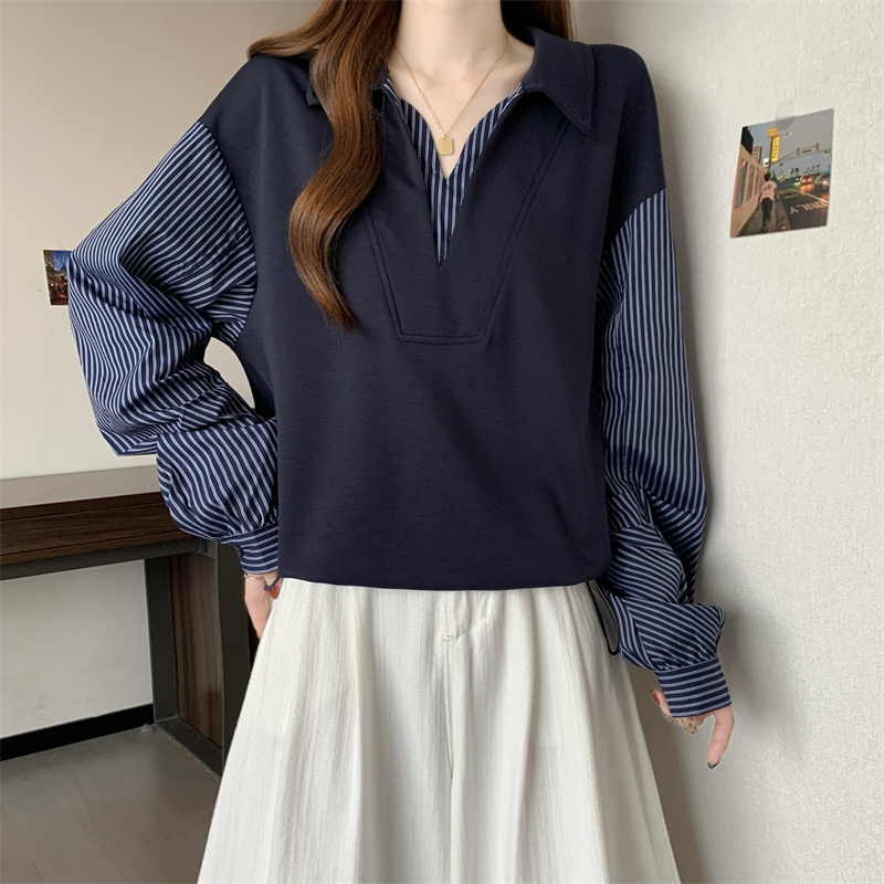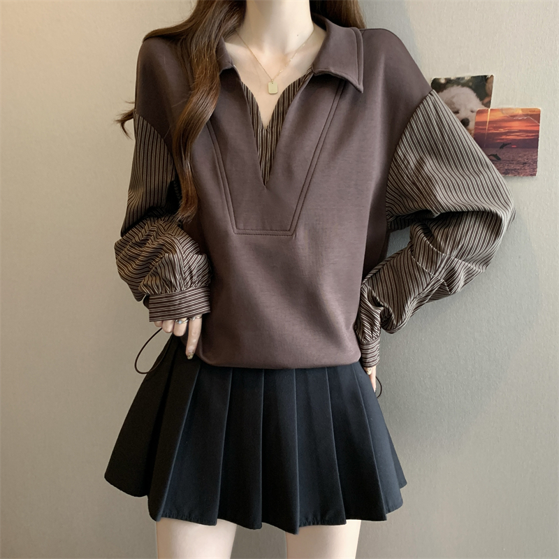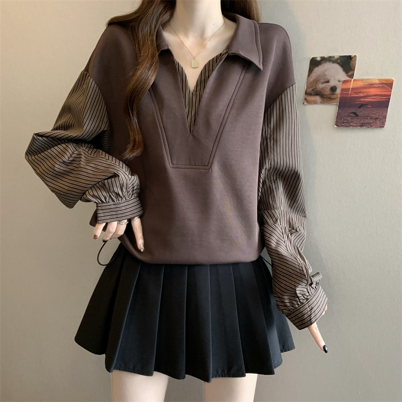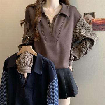 FA44507# 大码胖MM新款设计感假两件拼接格子衬衫抽绳遮肉显瘦上衣 服裝批發女裝批發服飾貨源