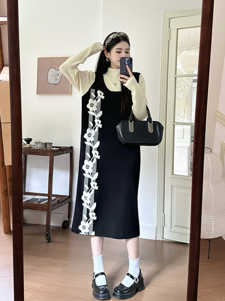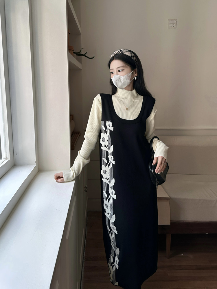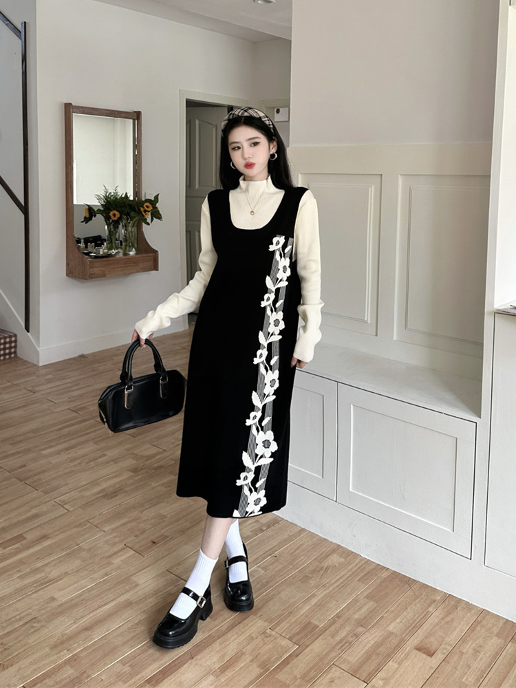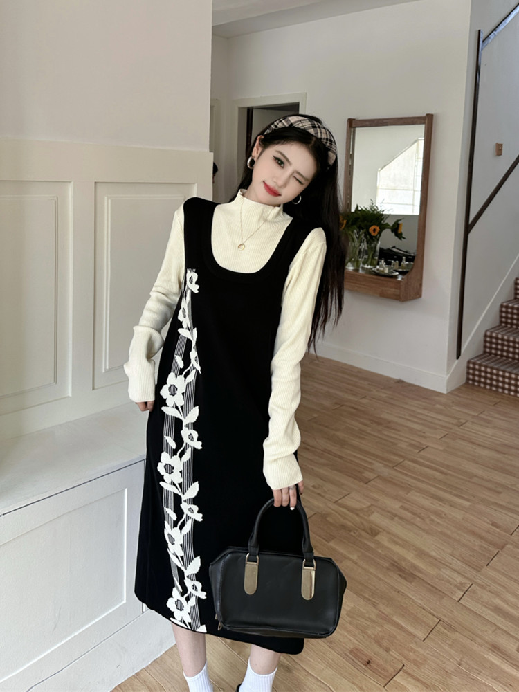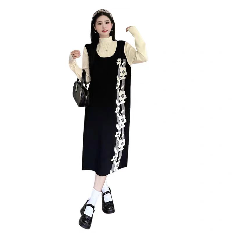 Home > 夜店裙、长袖连衣裙 > FA44566# 大码女装秋冬胖MM设计感显瘦内搭小黑裙气质假两件针织连衣裙 服裝批發女裝批發服飾貨源