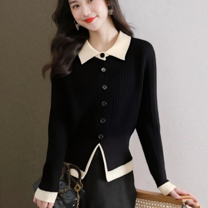FA44591# 设计感假两件拼接针织衫女春秋季新款韩版时尚百搭休闲上衣 服裝批發女裝批發服飾貨源