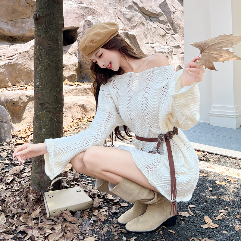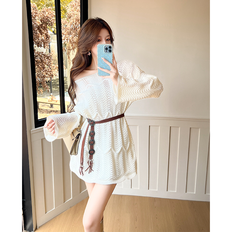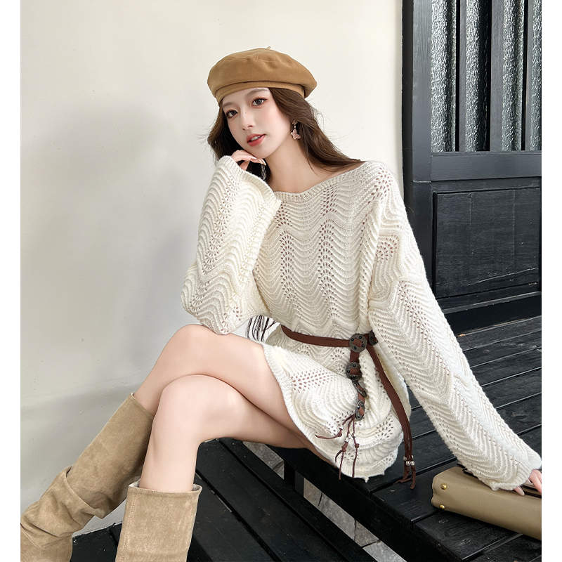 Home > 毛衣、针织衫 > FA44656# 秋冬新款法式温柔风缕空针织衫女慵懒设计感外搭罩衫长袖毛衣 服裝批發女裝批發服飾貨源