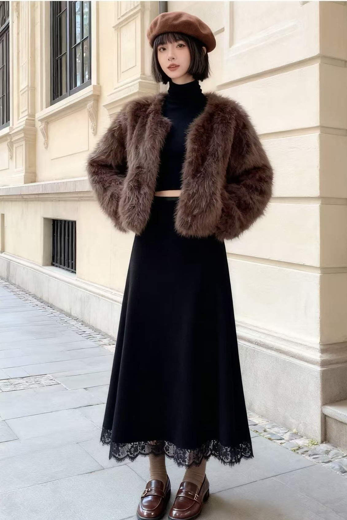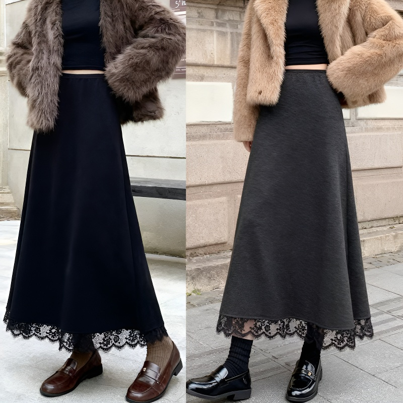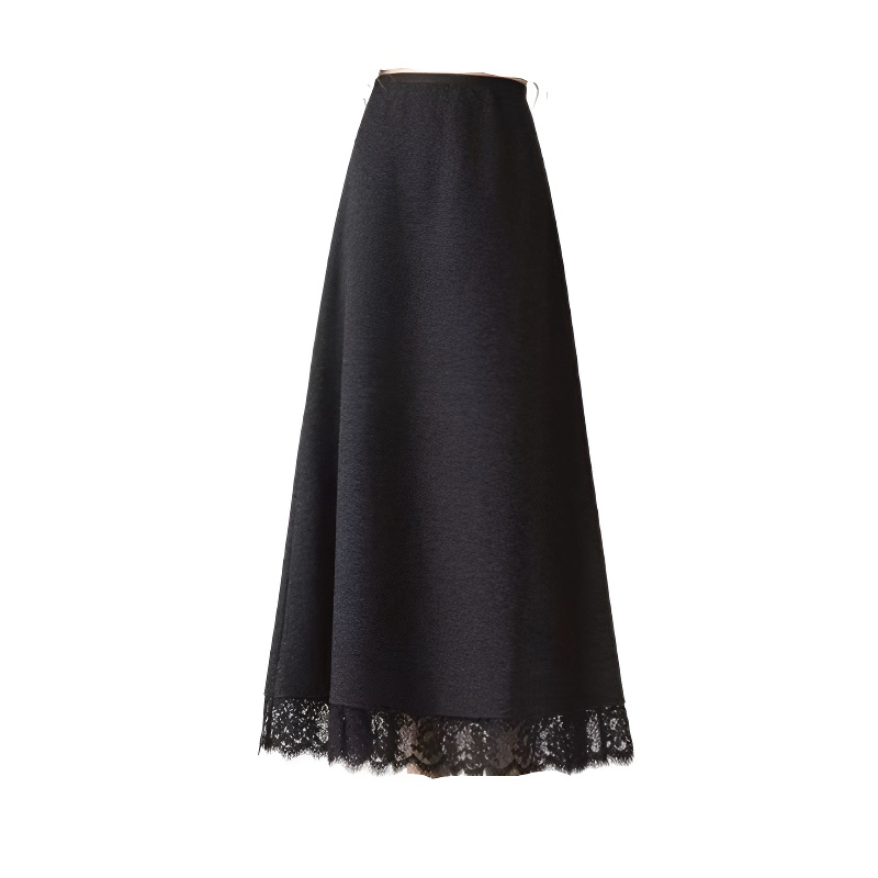 FA44833# 韩版毛呢蕾丝花边半身裙女秋冬季高腰垂感显瘦遮跨A字大摆中长裙 服裝批發女裝批發服飾貨源