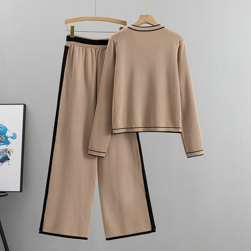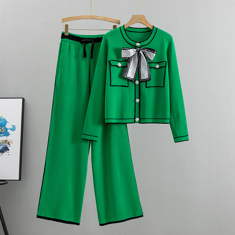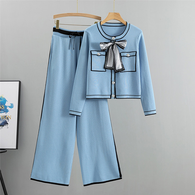 FA44890# 一整套小香风韩国chic蝴蝶结气质针织开衫毛衣阔腿裤套装秋冬女装 服裝批發女裝批發服飾貨源