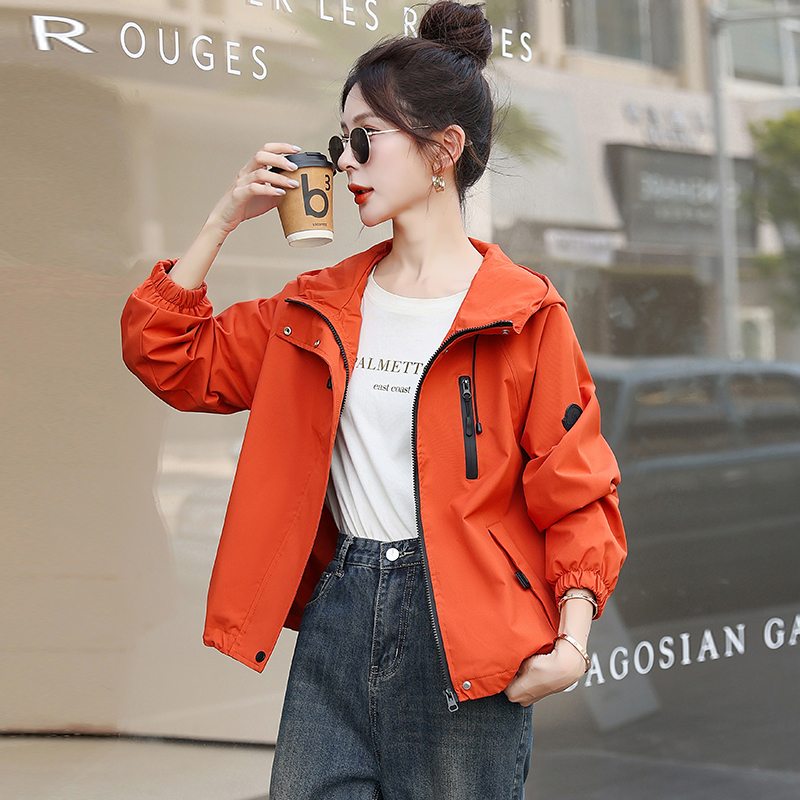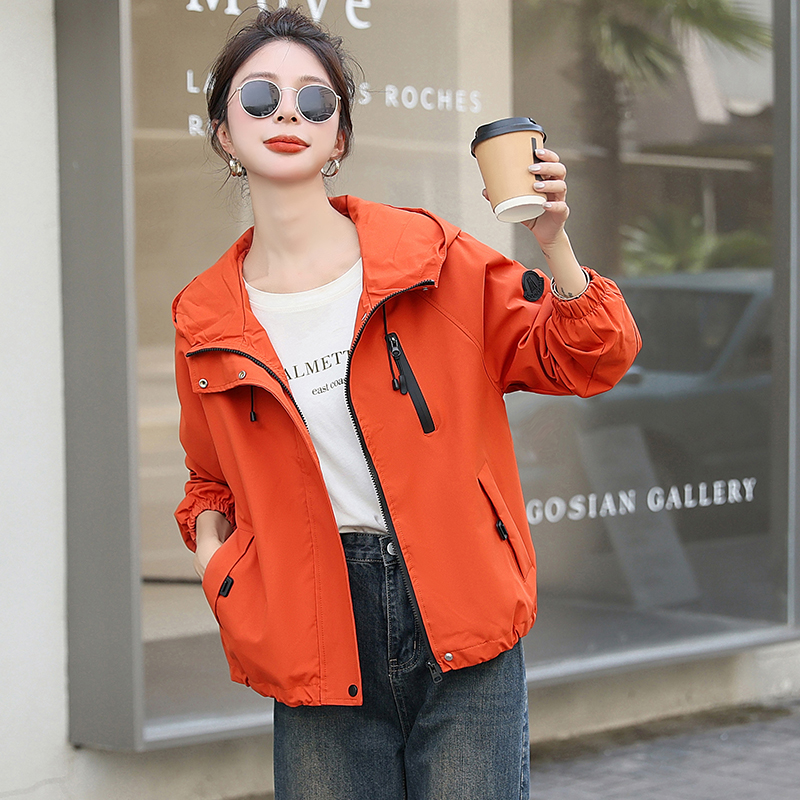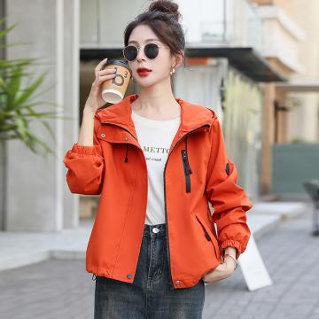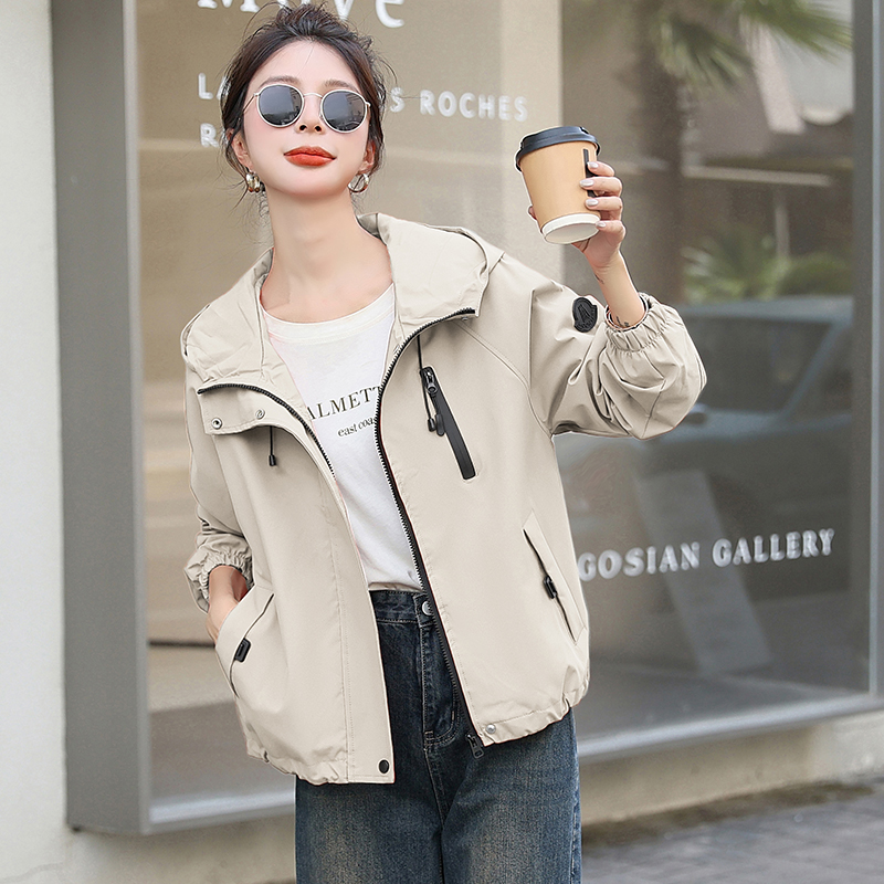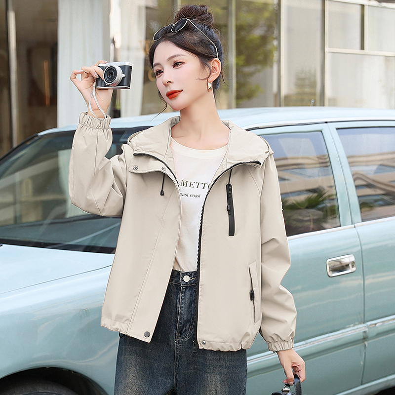 FA44933# 春秋外套女时尚洋气连帽宽松休闲冲锋衣防水防风夹克 服裝批發女裝批發服飾貨源