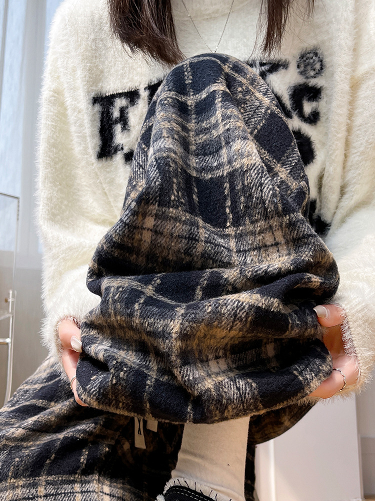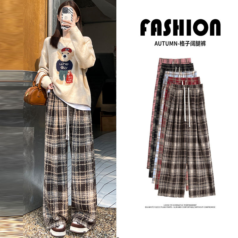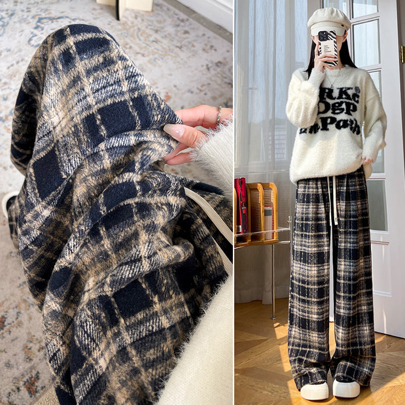 FA45740# 秋季大码女装宽松慵懒风高腰垂感毛呢格子百搭休闲直筒阔腿裤 服裝批發女裝批發服飾貨源