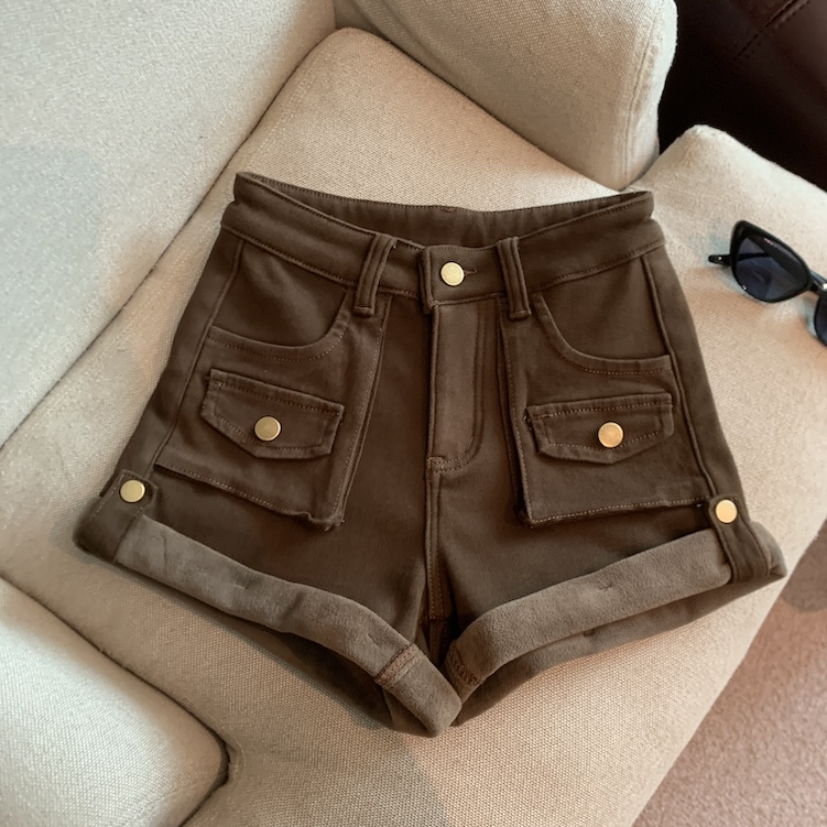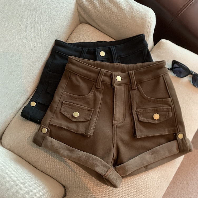 Home > 短裤、半身裙 > FA46608# 秋冬复古高腰工装加绒短裤