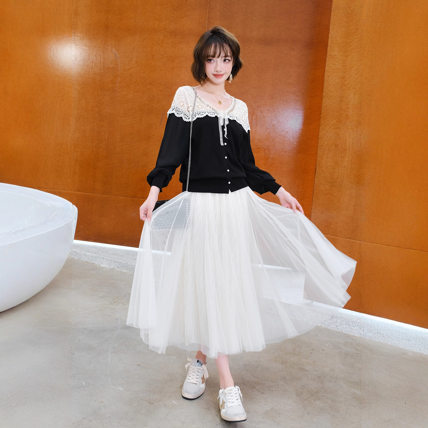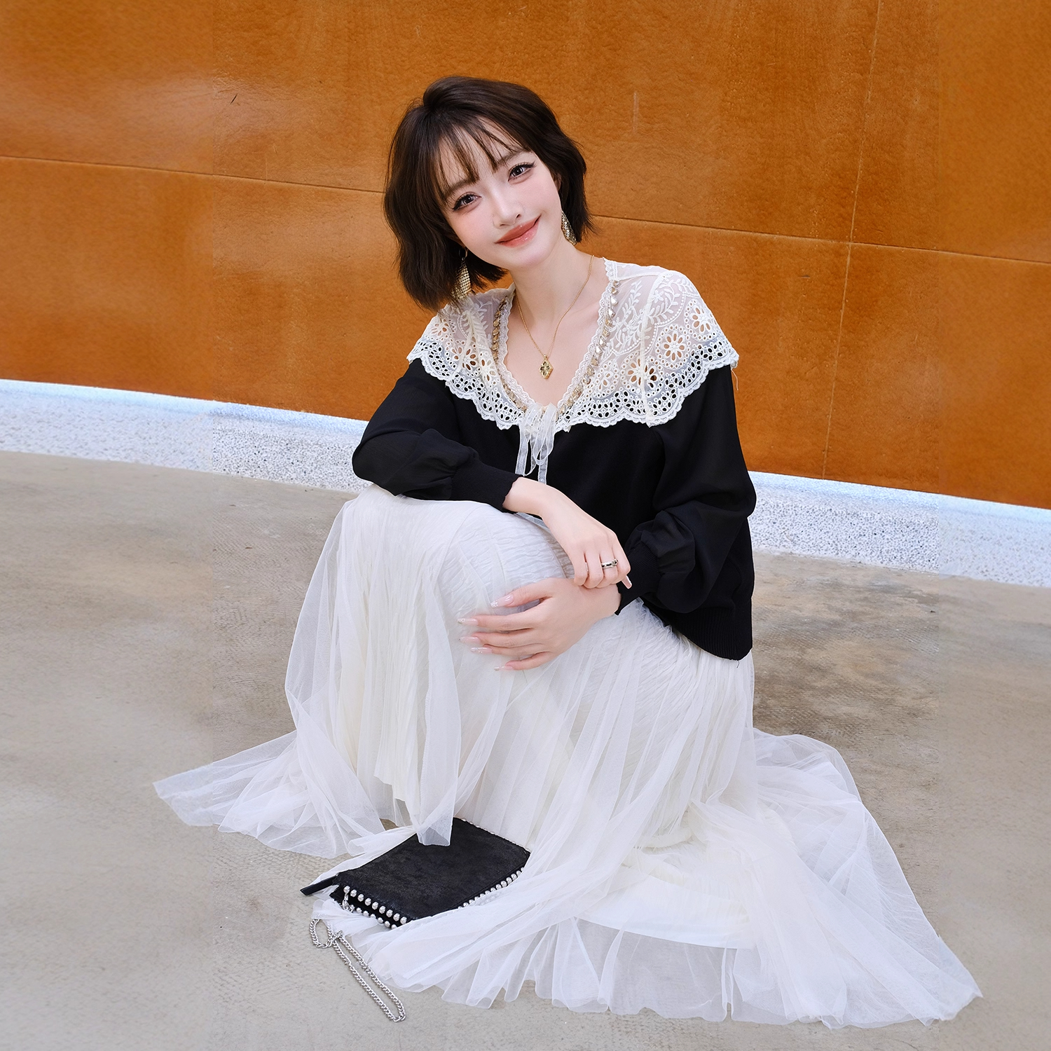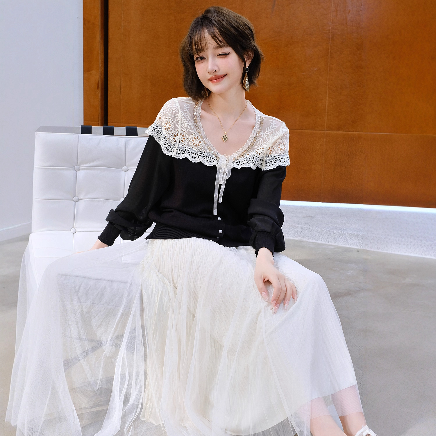 Home > 长袖雪纺衫、衬衫、上衣 > FA46652# 气质蕾丝拼接衫新款时尚重工镶钻镂空v领上衣