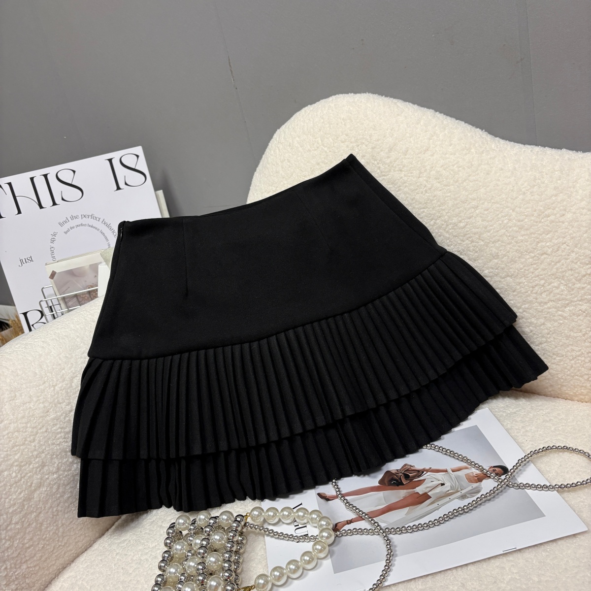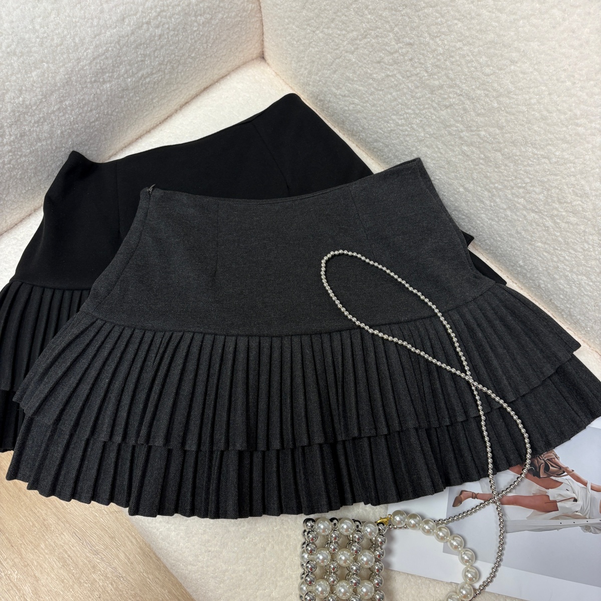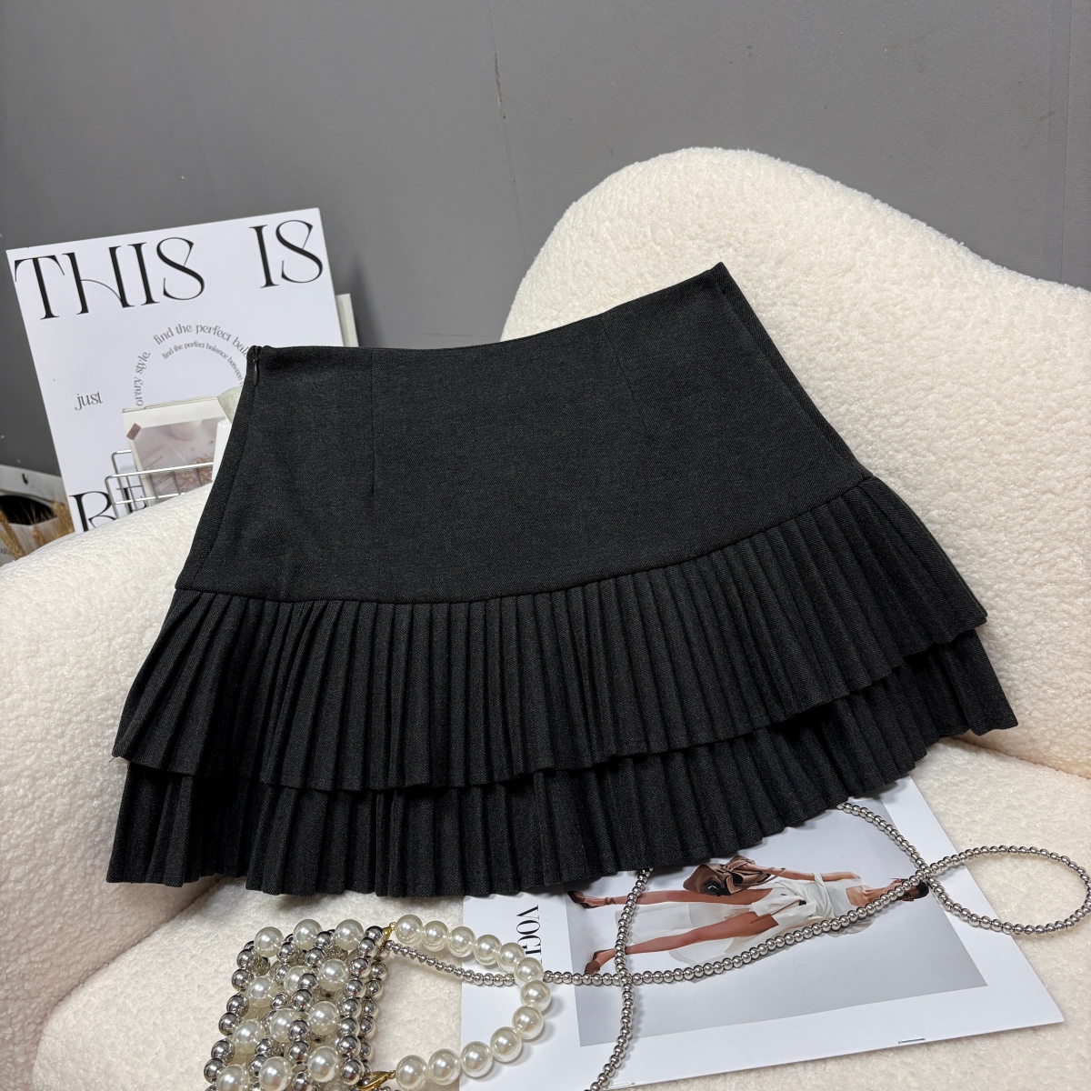 FA46661# 秋冬新款加厚毛呢百褶半身裙学院风韩版百搭减龄a字短裙 服裝批發女裝批發服飾貨源