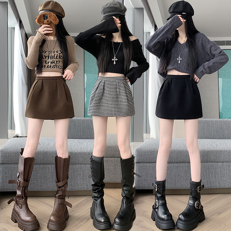 FA46677# 英伦风撞色格子小众减龄半身裙女秋冬季高腰显瘦花苞裙短裙 服裝批發女裝批發服飾貨源