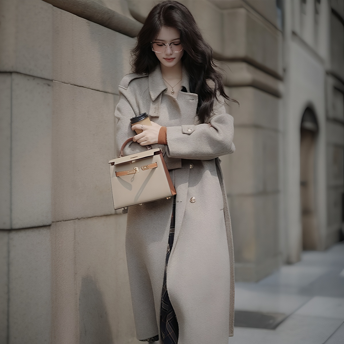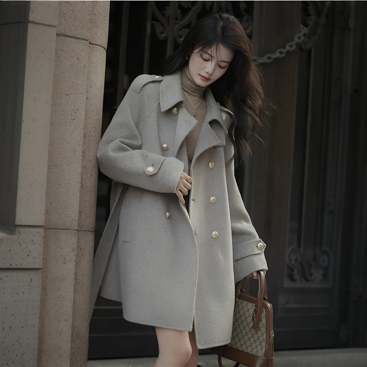FA46700# 赫本风毛呢外套女秋冬新款韩版双排扣宽松加厚中长款呢子大衣 服裝批發女裝批發服飾貨源