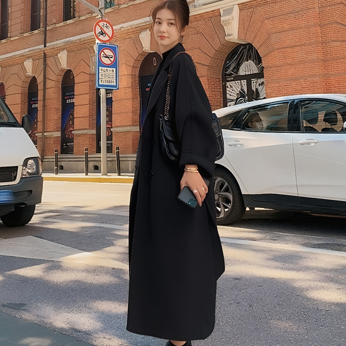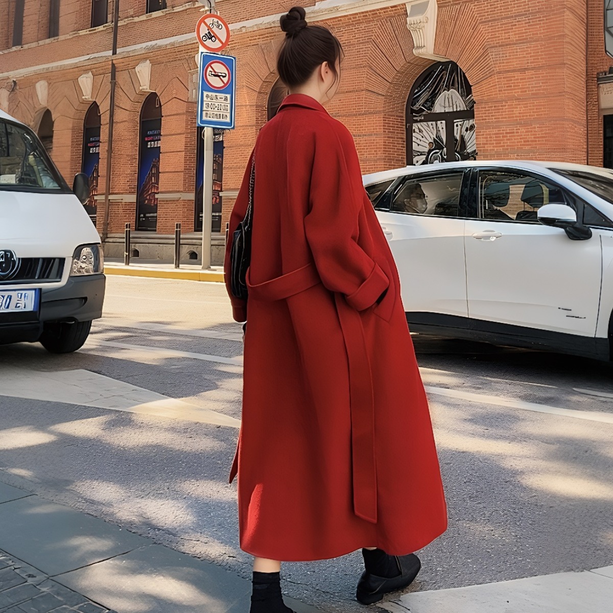 FA46702# 赫本风红色毛呢外套女秋冬中长款新款高级感气质呢子大衣厚 服裝批發女裝批發服飾貨源